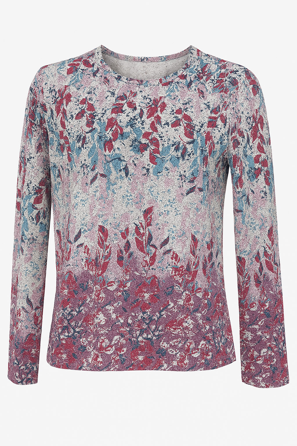 Knit like top, scattered floral print, round neck, long sleeve, regular fit