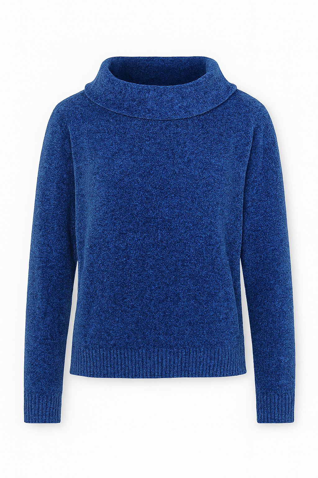 Knit jumper, chenille fabric, plain body, cowl neck with side slit, long sleeve, regular fit
