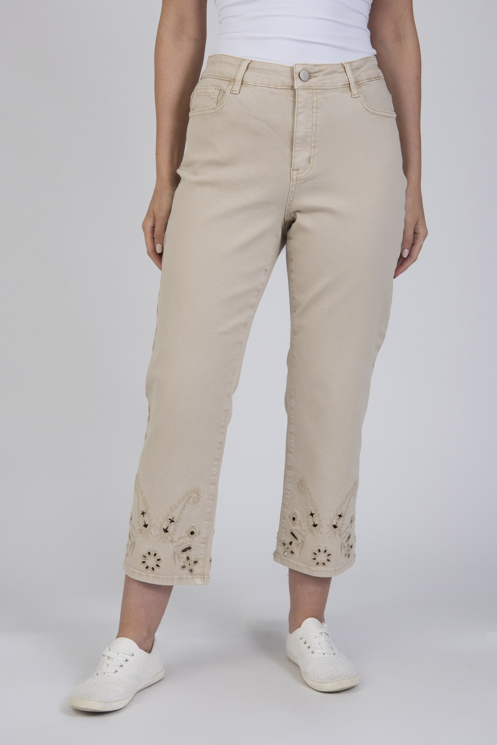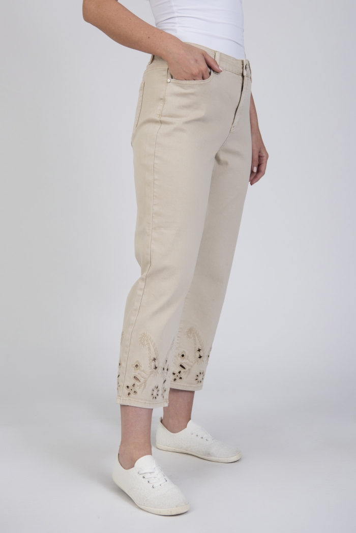 Cropped embroidered jeans