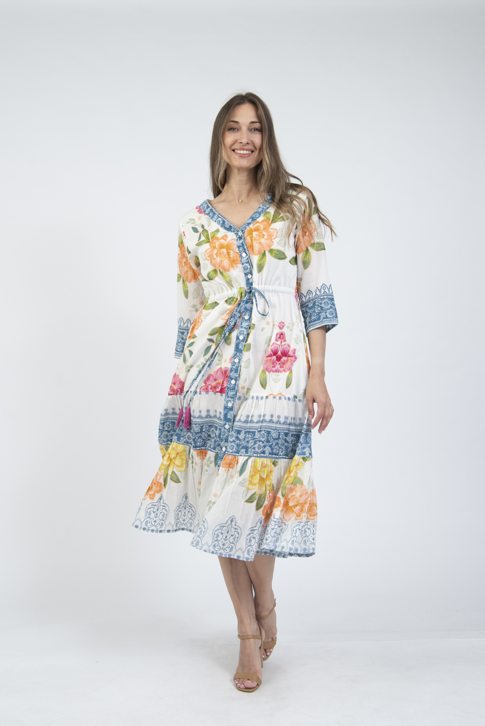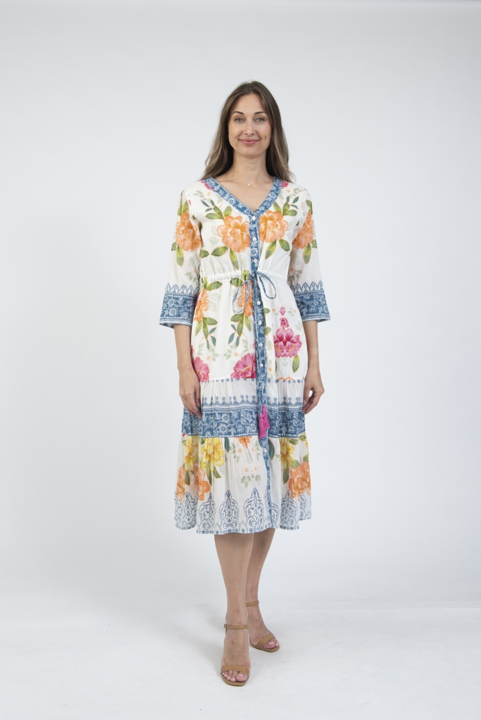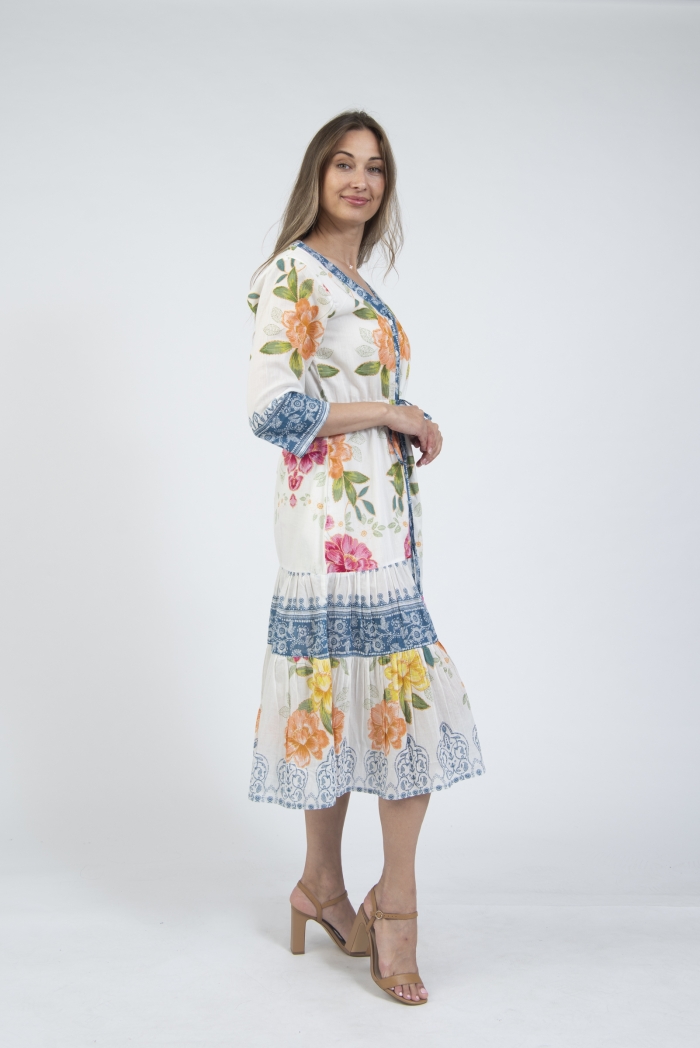 Printed summer dress with sleeves