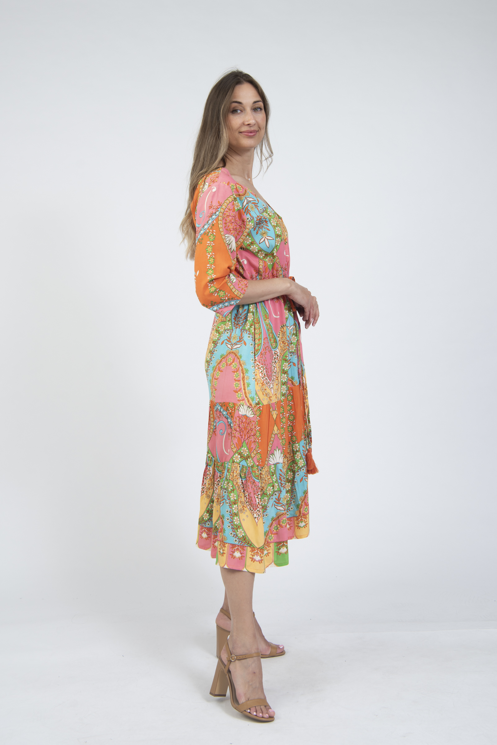 Printed summer dress with sleeves