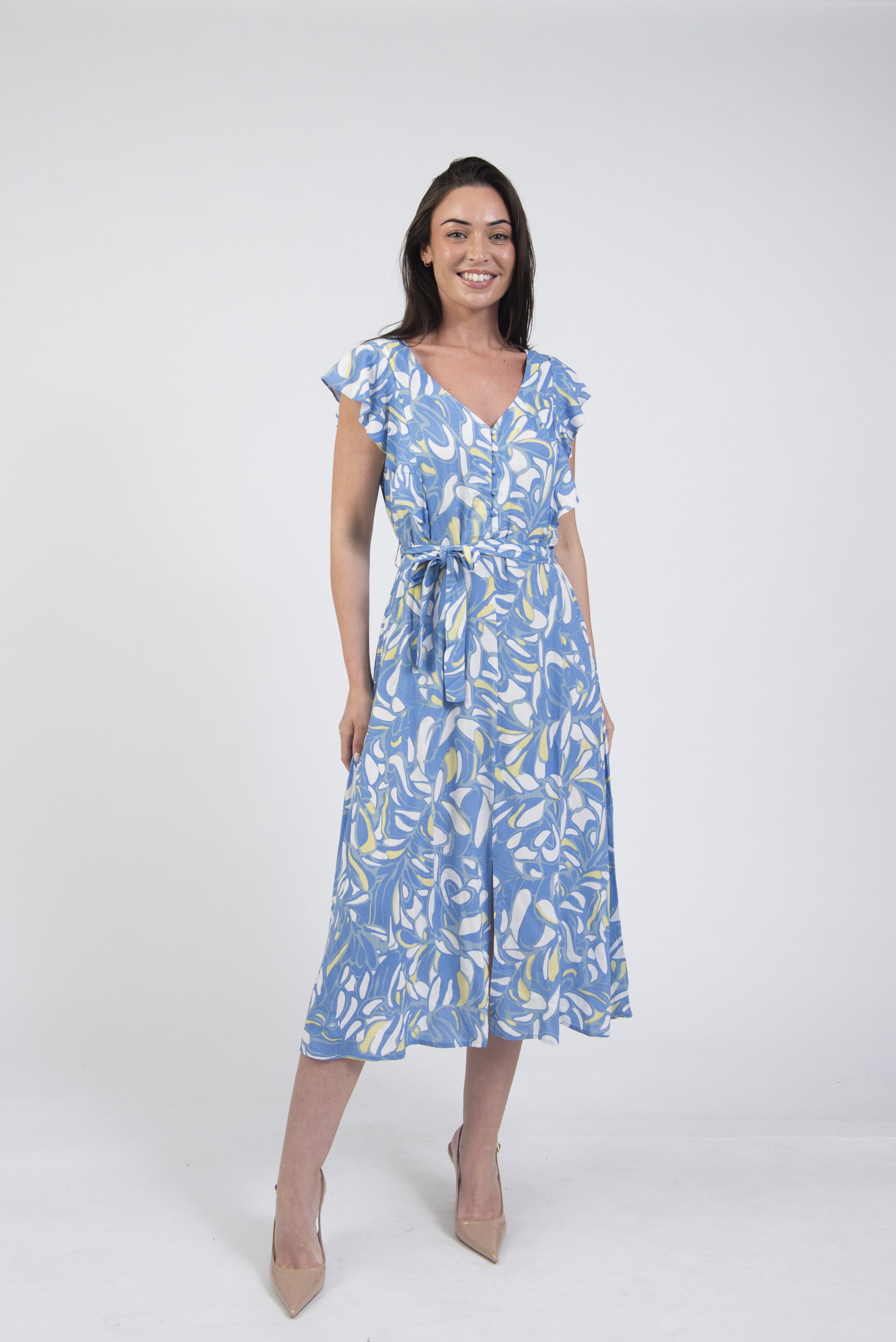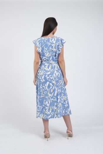 Printed V-neck summer dress with belt