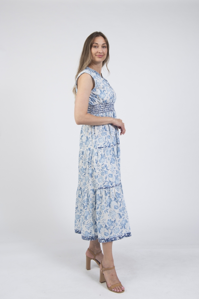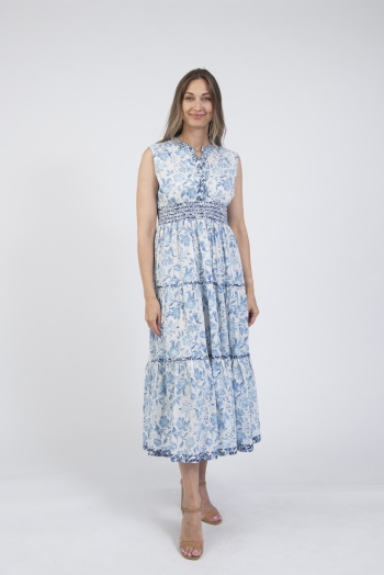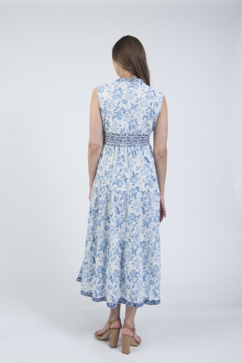 Printed sleeveless notch neck summer dress