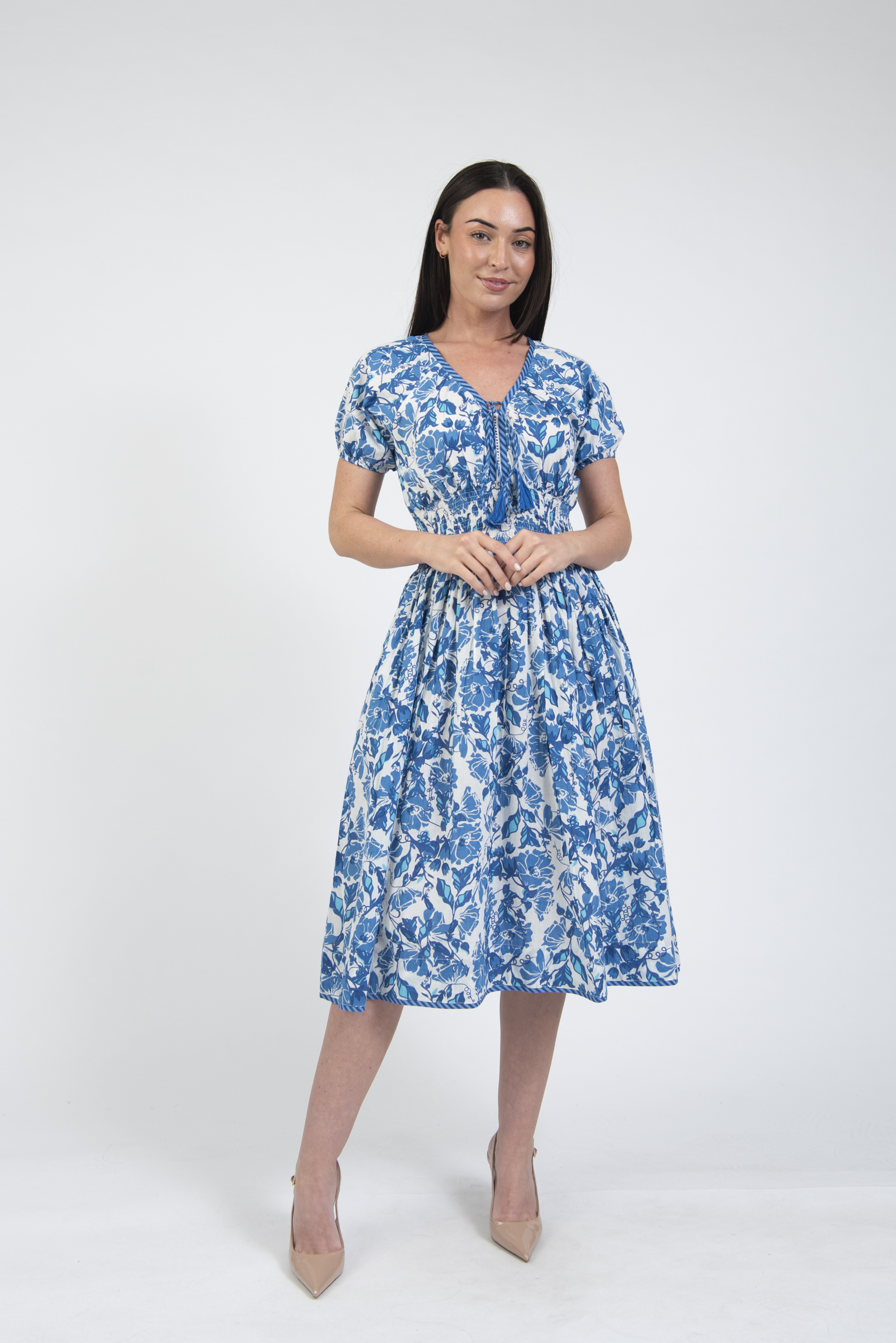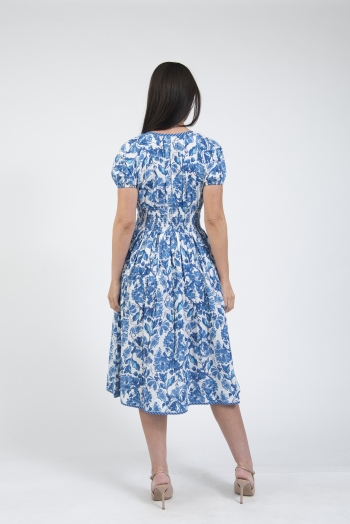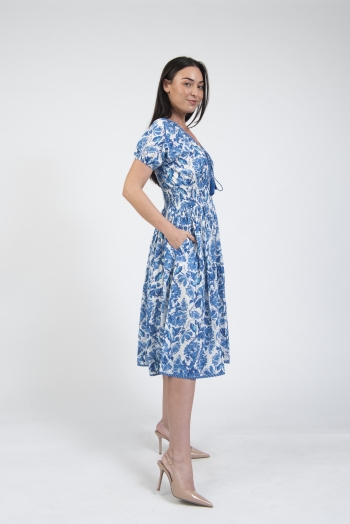 Printed summer dress with sleeves & tie