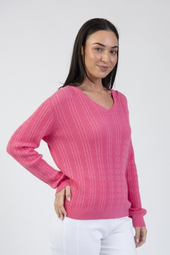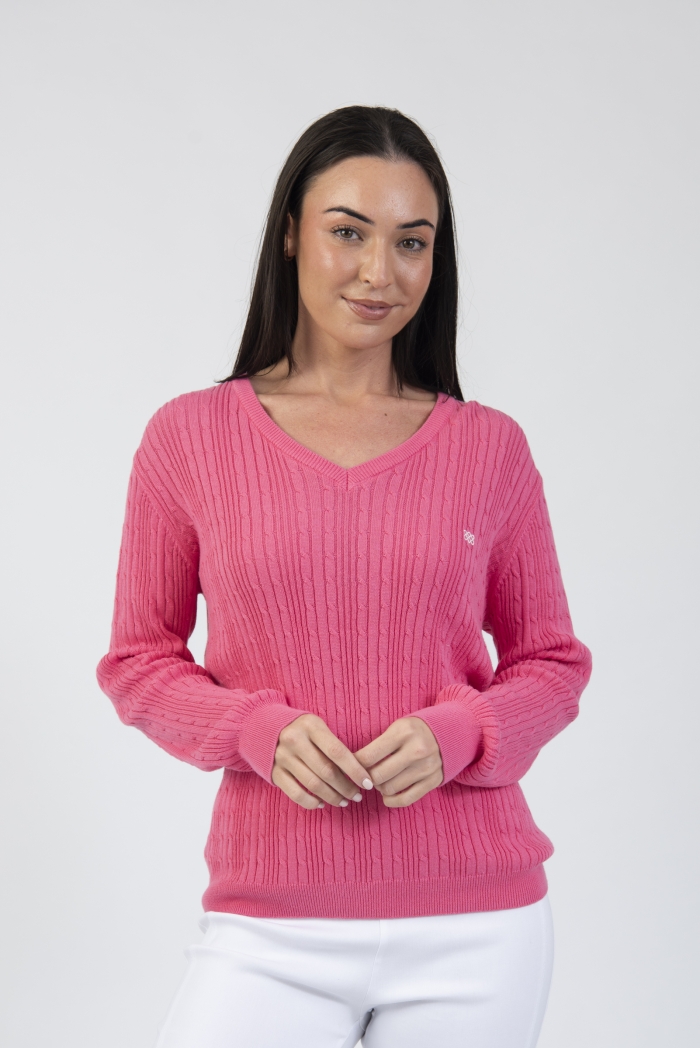 Cable knit V-neck sweater