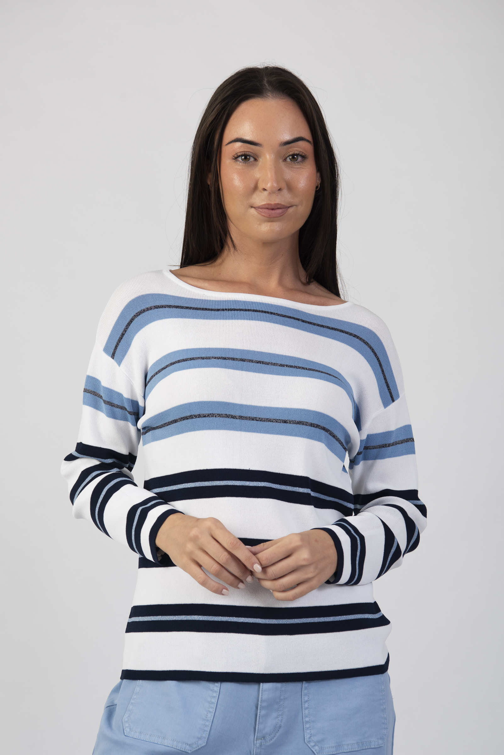 Striped long sleeve round neck sweater