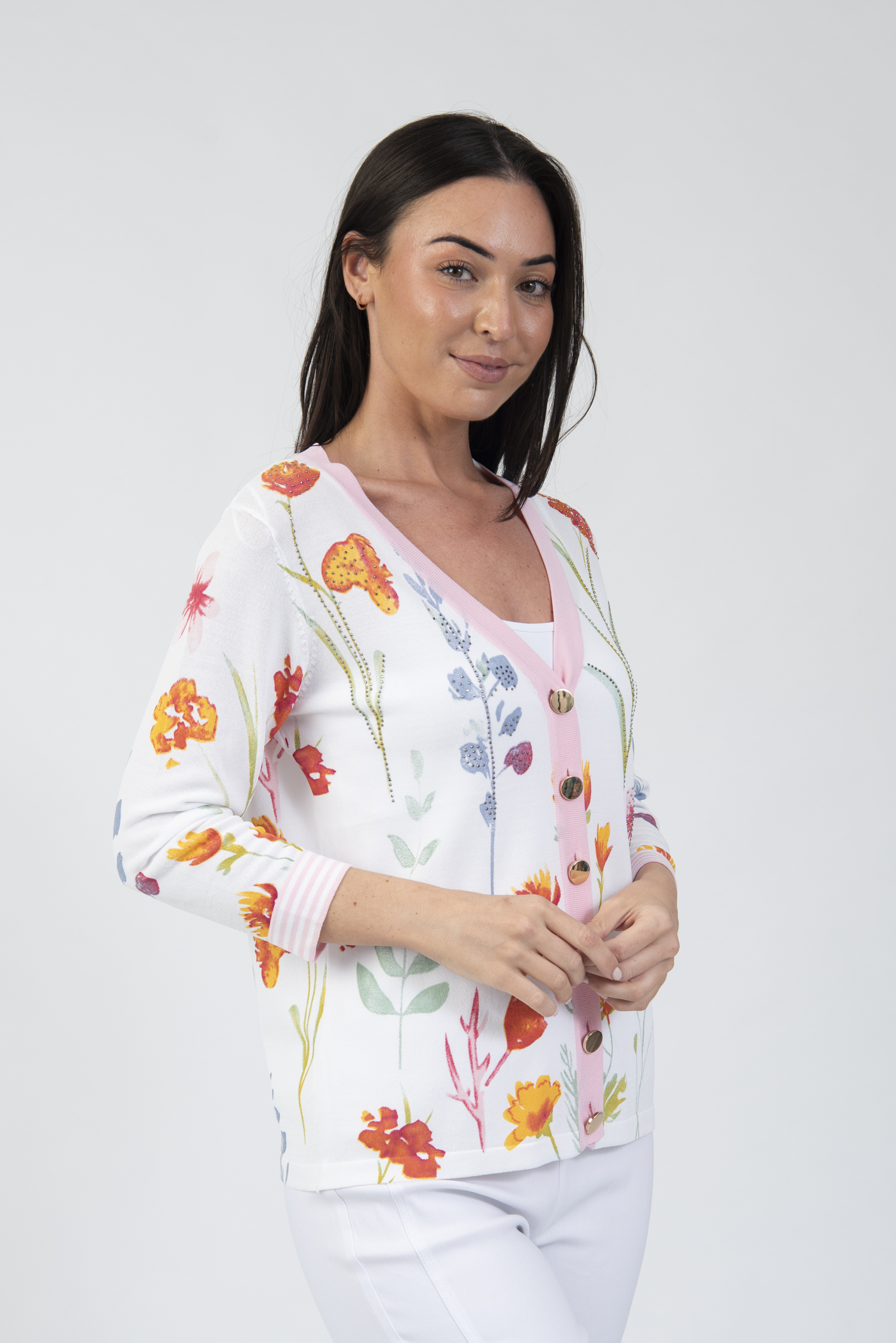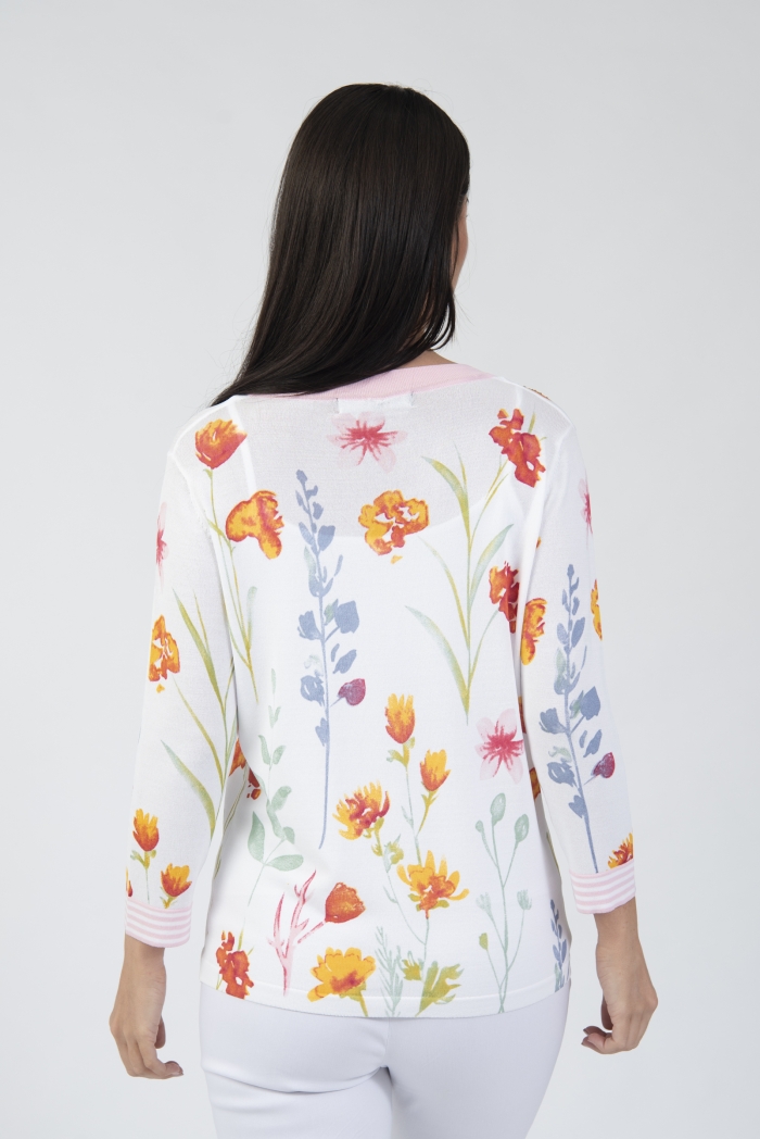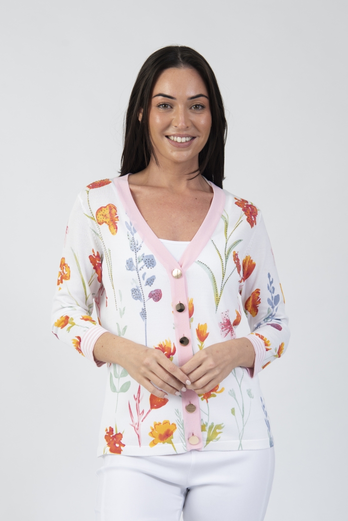 Floral V-neck cardigan with 3/4 length sleeve