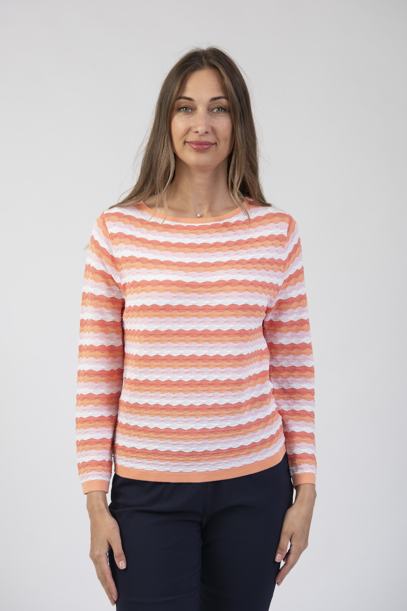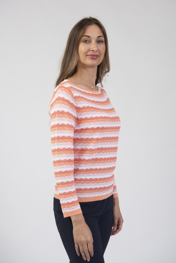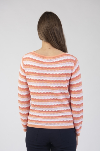 Round neck long sleeve sweater with textured stripe