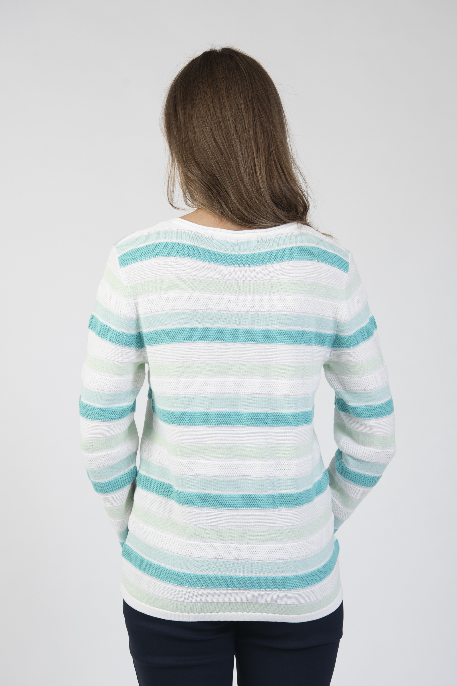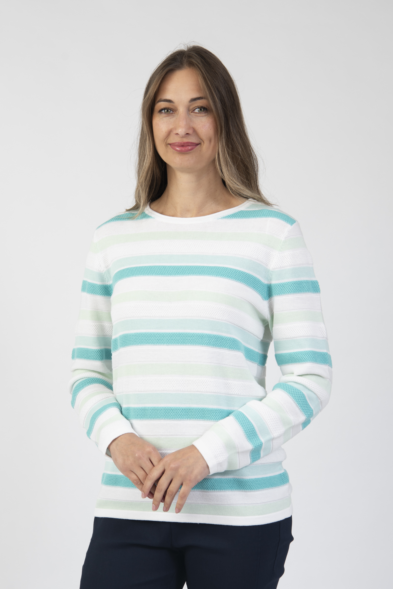 Round neck long sleeve sweater with texture knit stripe