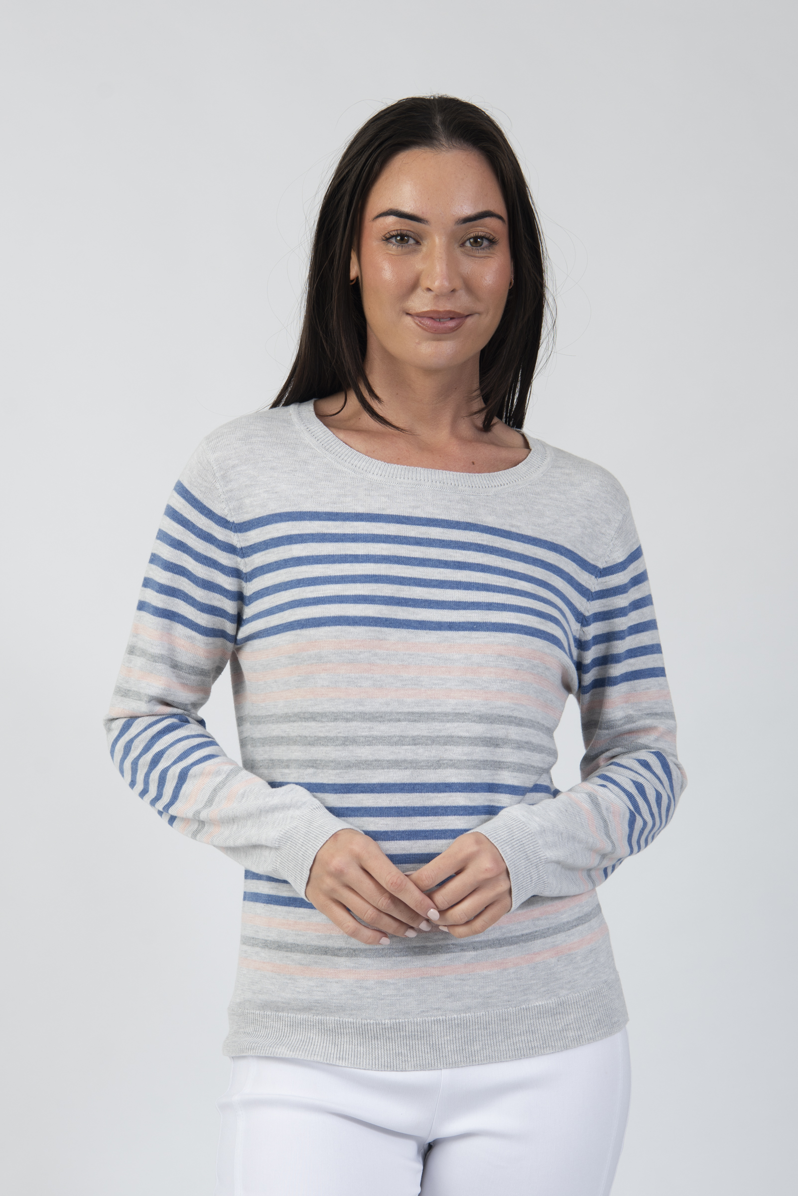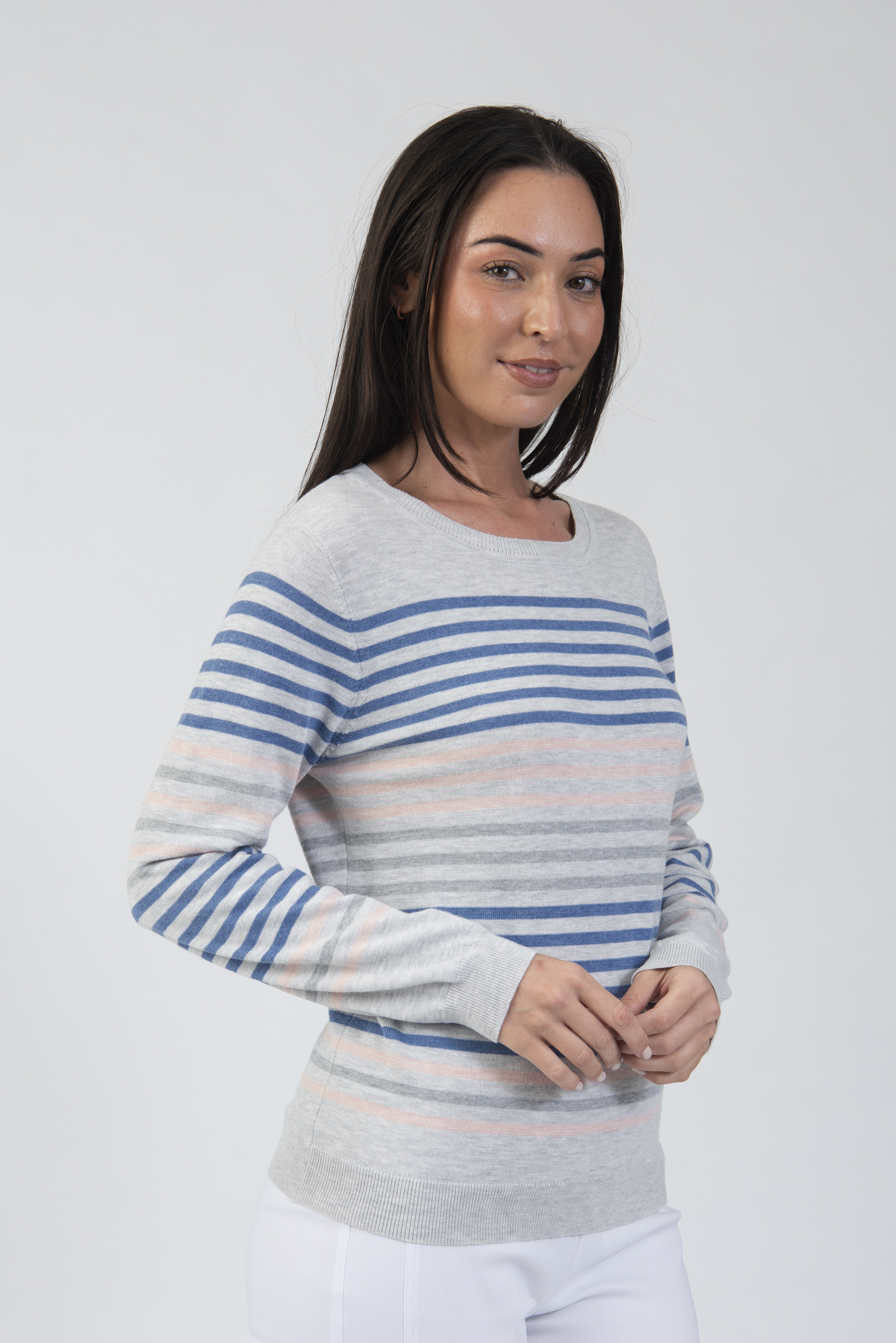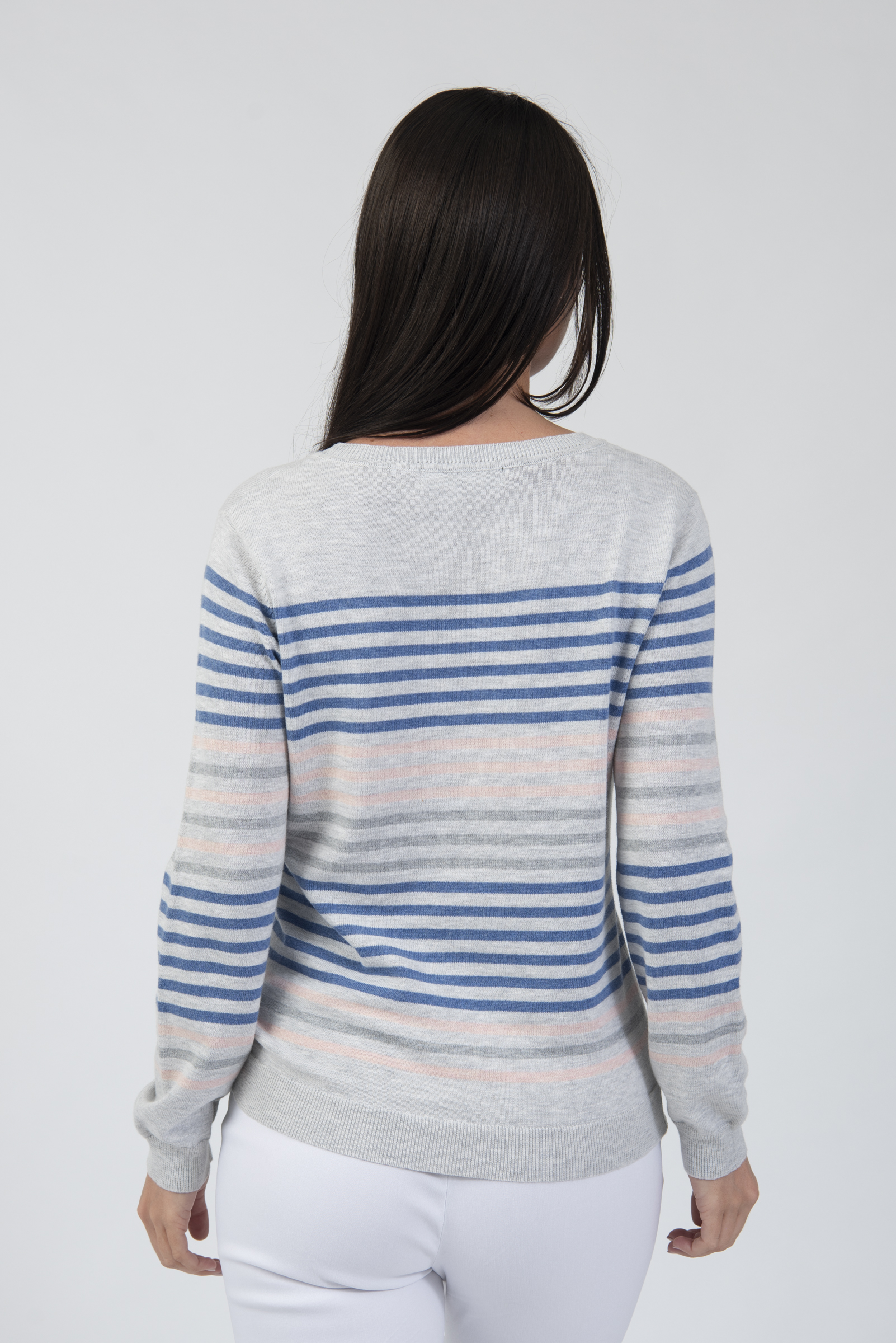 Round neck long sleeve stripe sweater