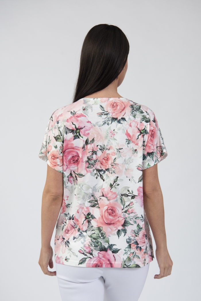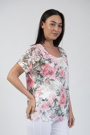 Round neck floral printed t-shirt with lace