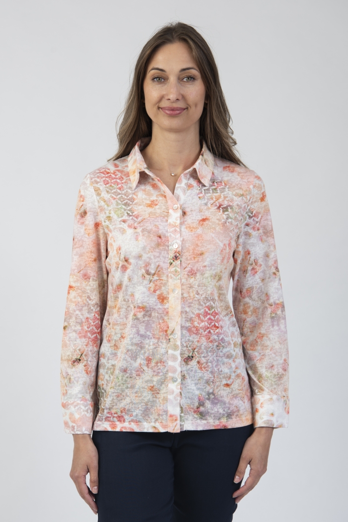 Printed long sleeve shirt with collar