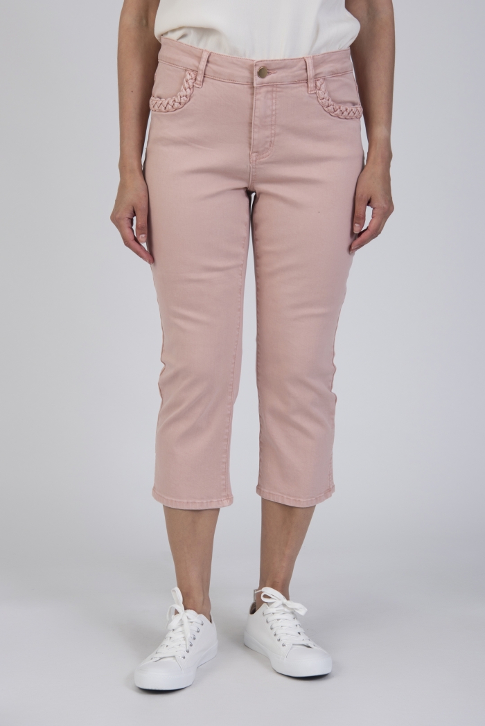 3/4 length jeans with slit & plaited pocket detail