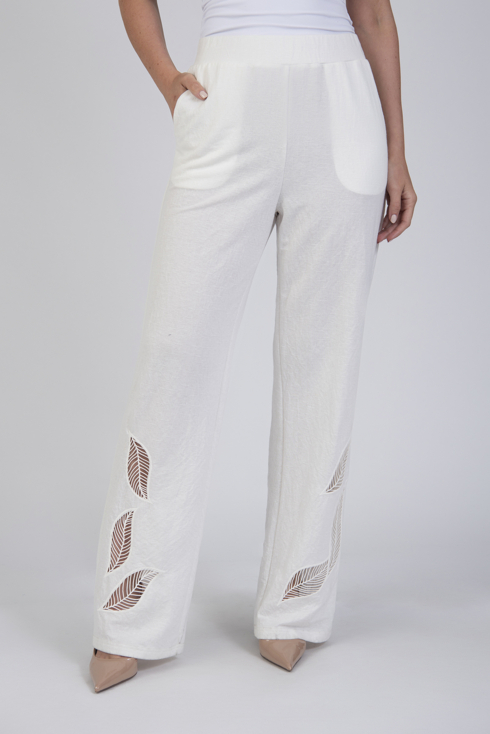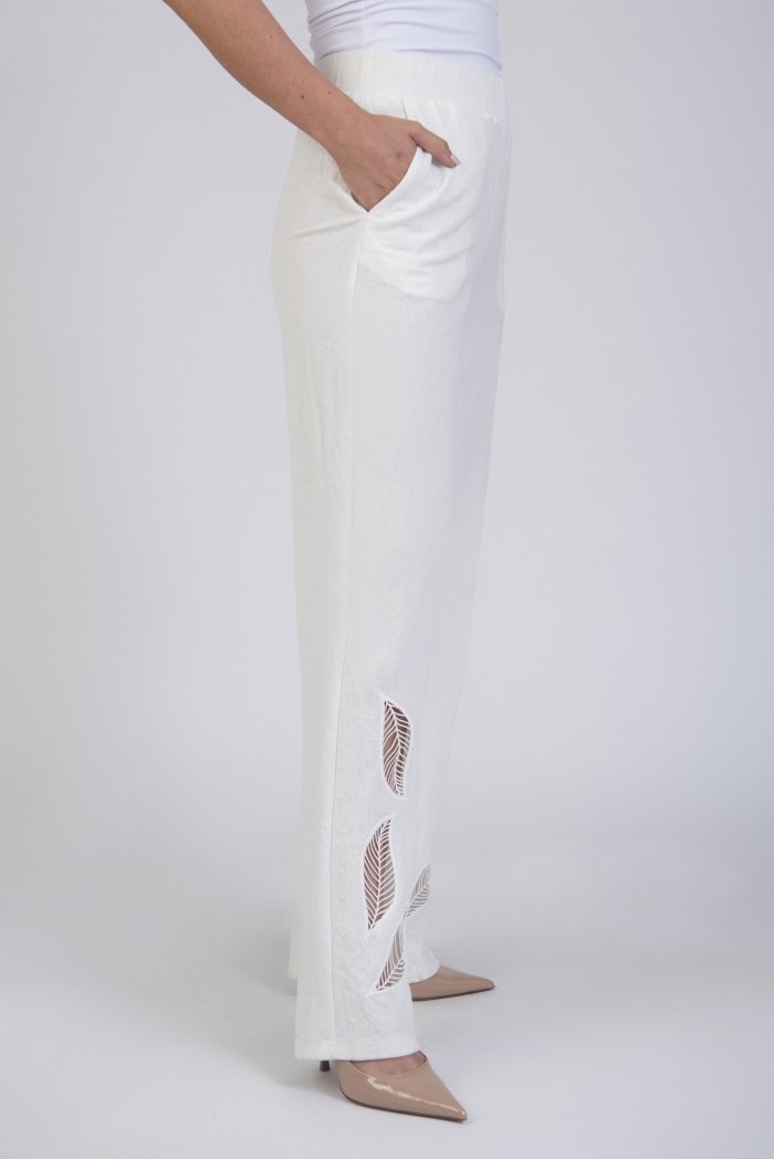 Wide leg trousers with laser cut details & pockets