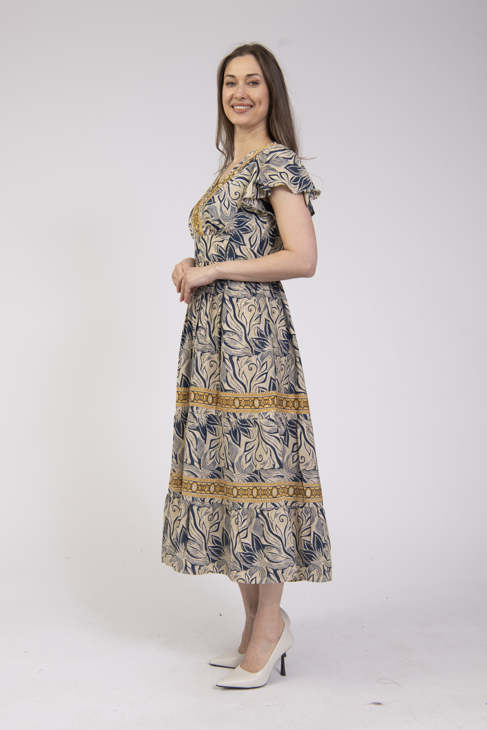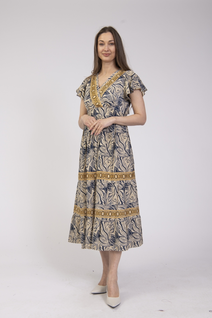 Printed V-neck summer dress with sleeves