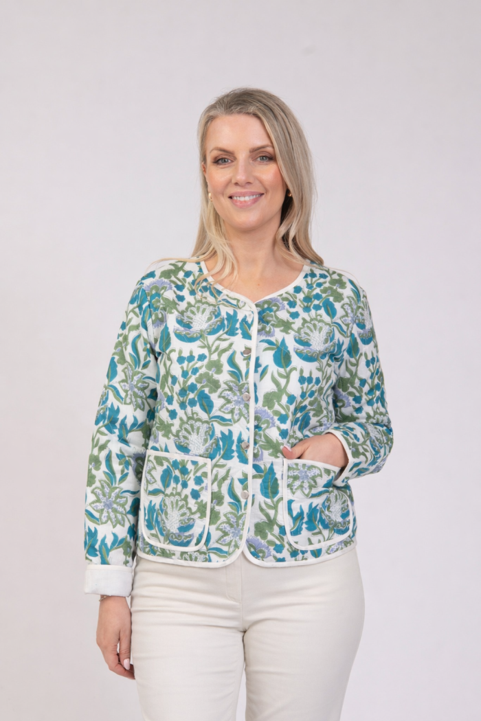 Lightweight quilted printed jacket with pockets