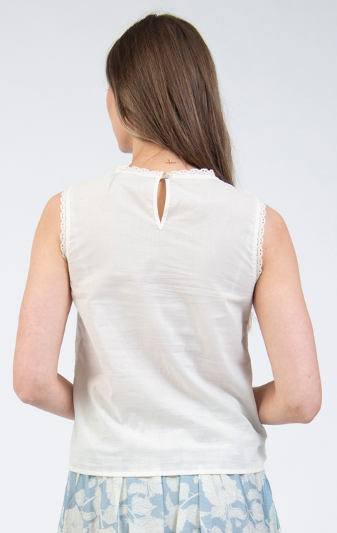 Embroidered round neck sleeveless top
