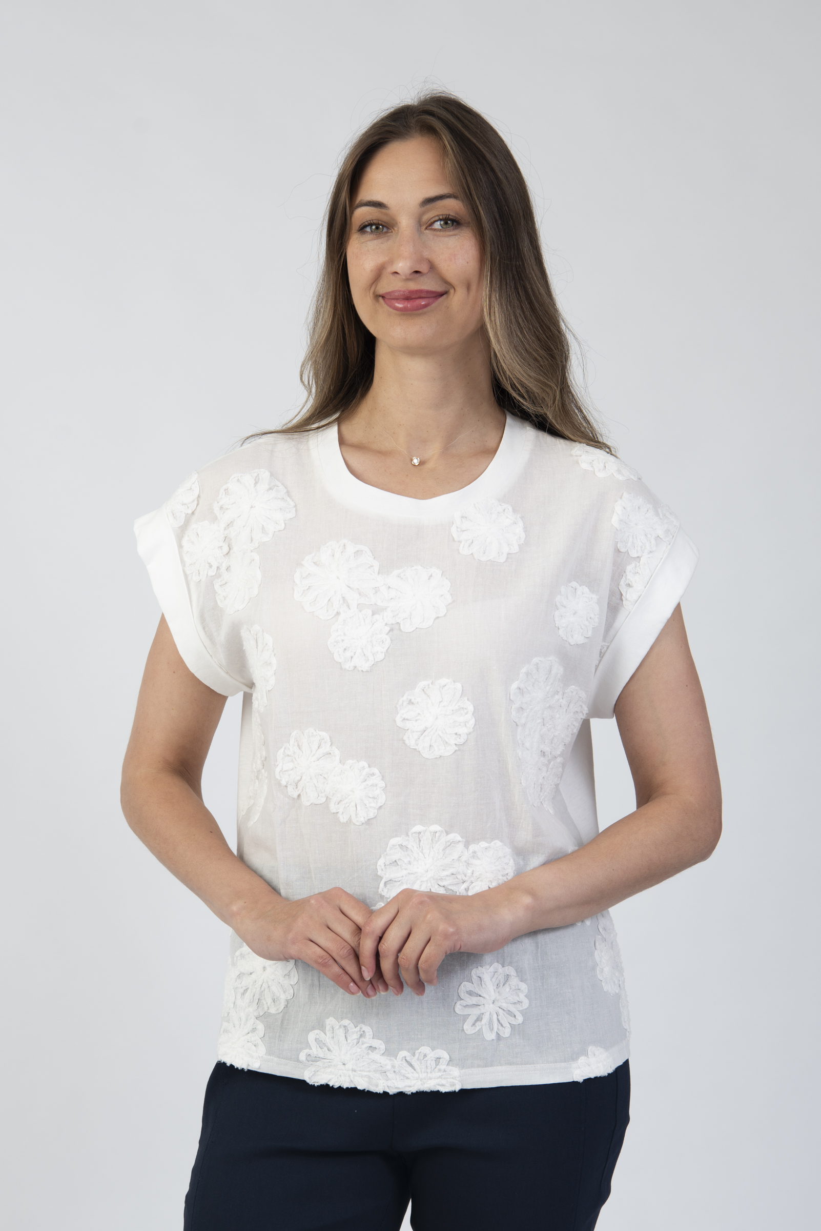 Round neck t-shirt with embroidery detail