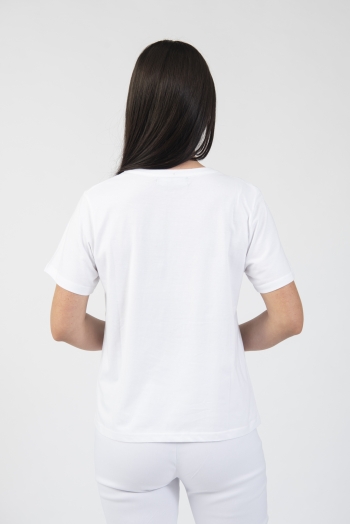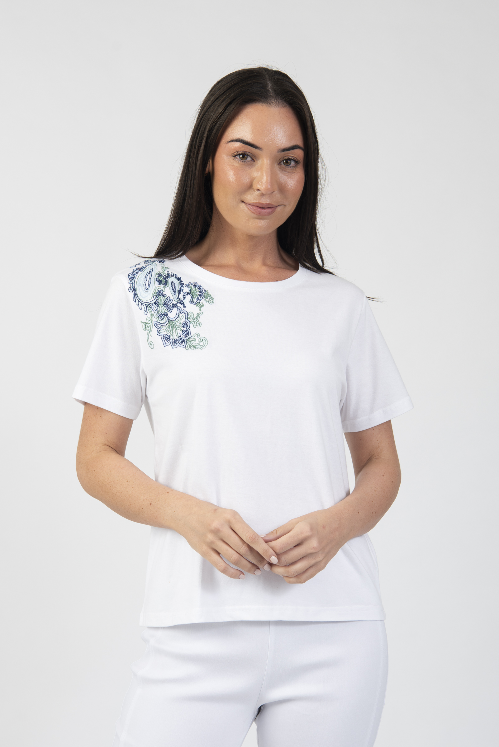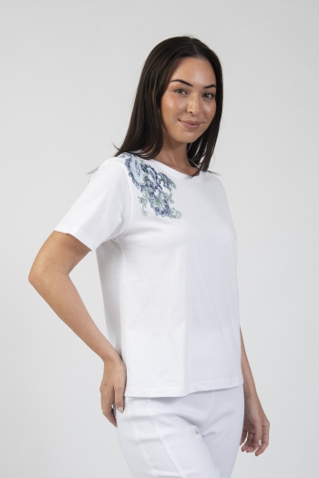 Round neck t-shirt with shoulder embroidery detail