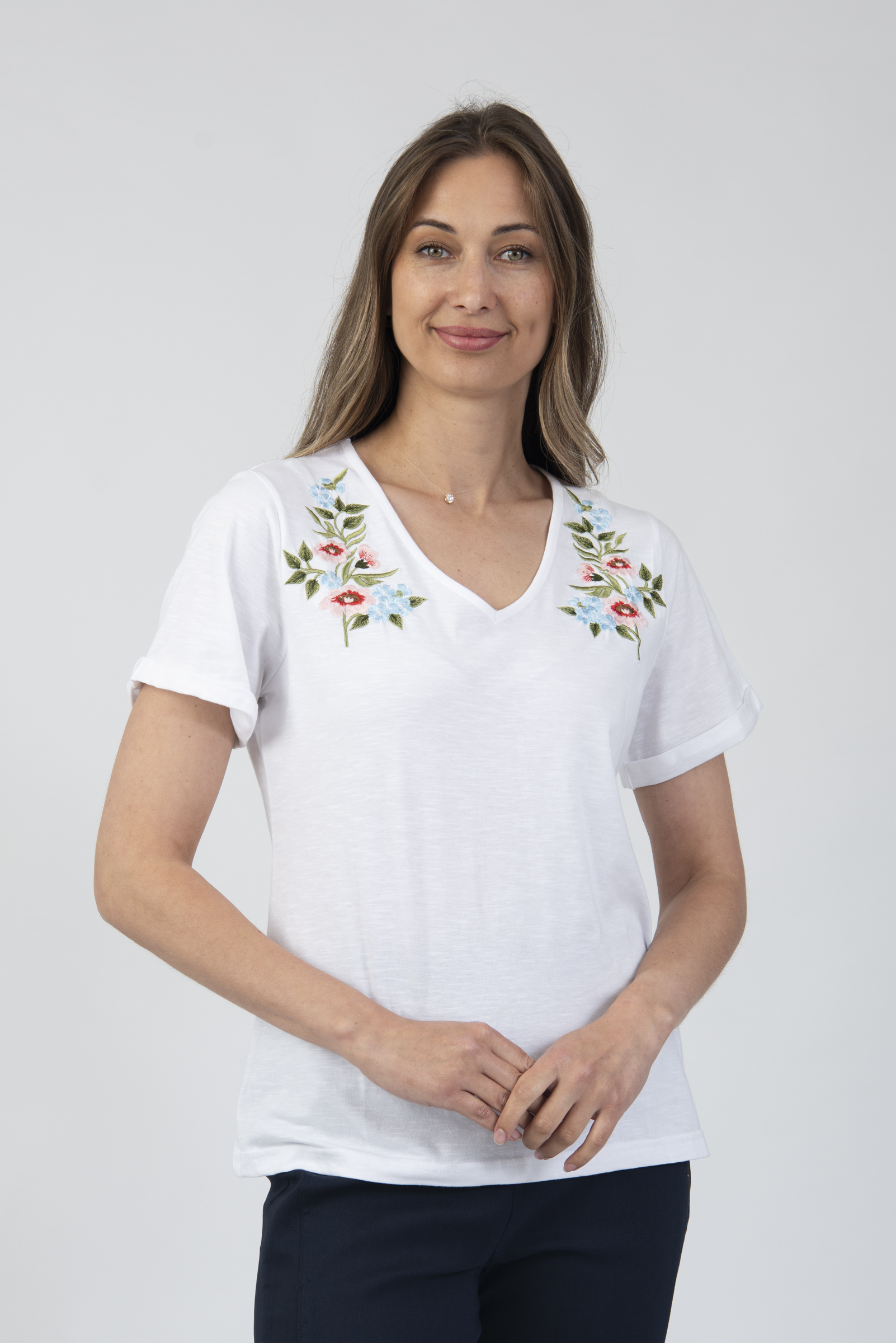 V-neck t-shirt with embroidery detail