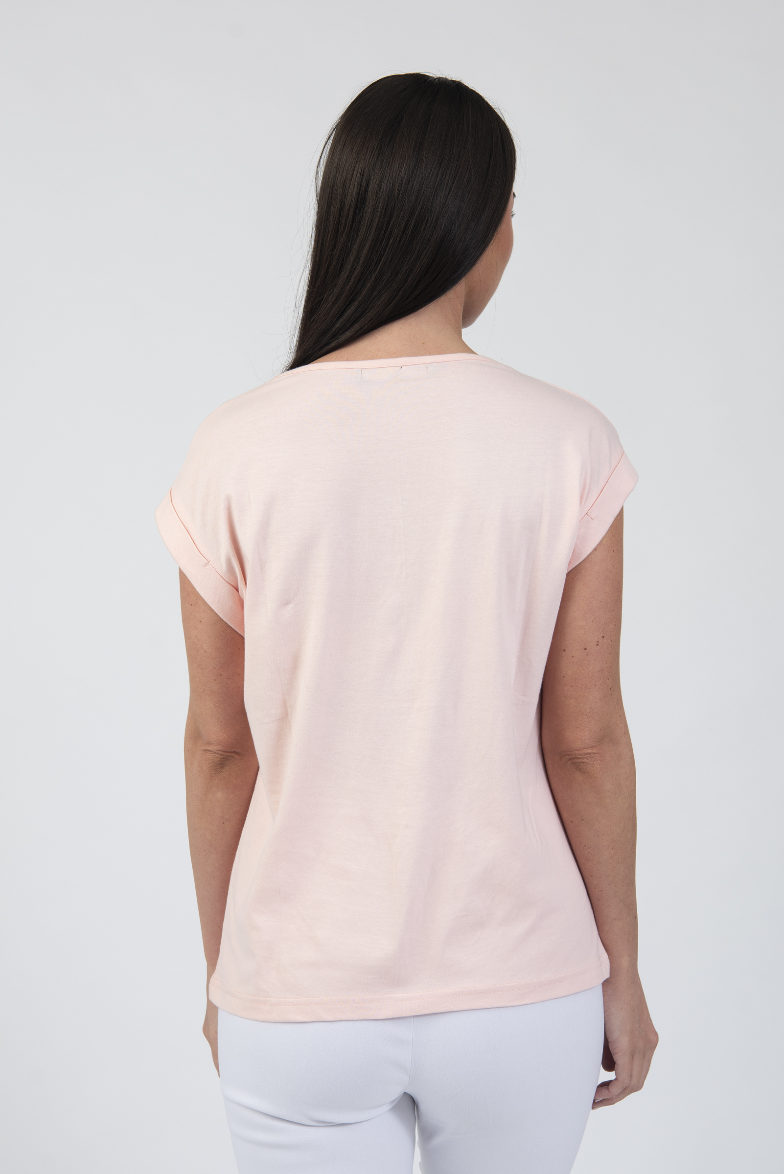 V-neck t-shirt with embroidery neckline detail