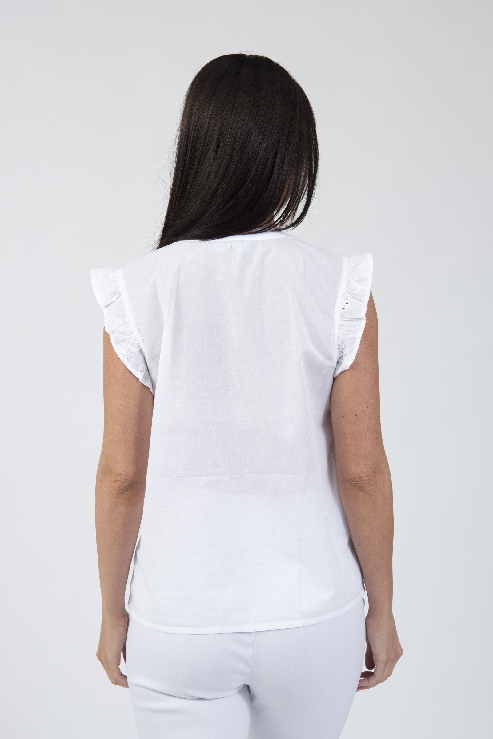 Button up V-neck top with frill sleeves & lace detail