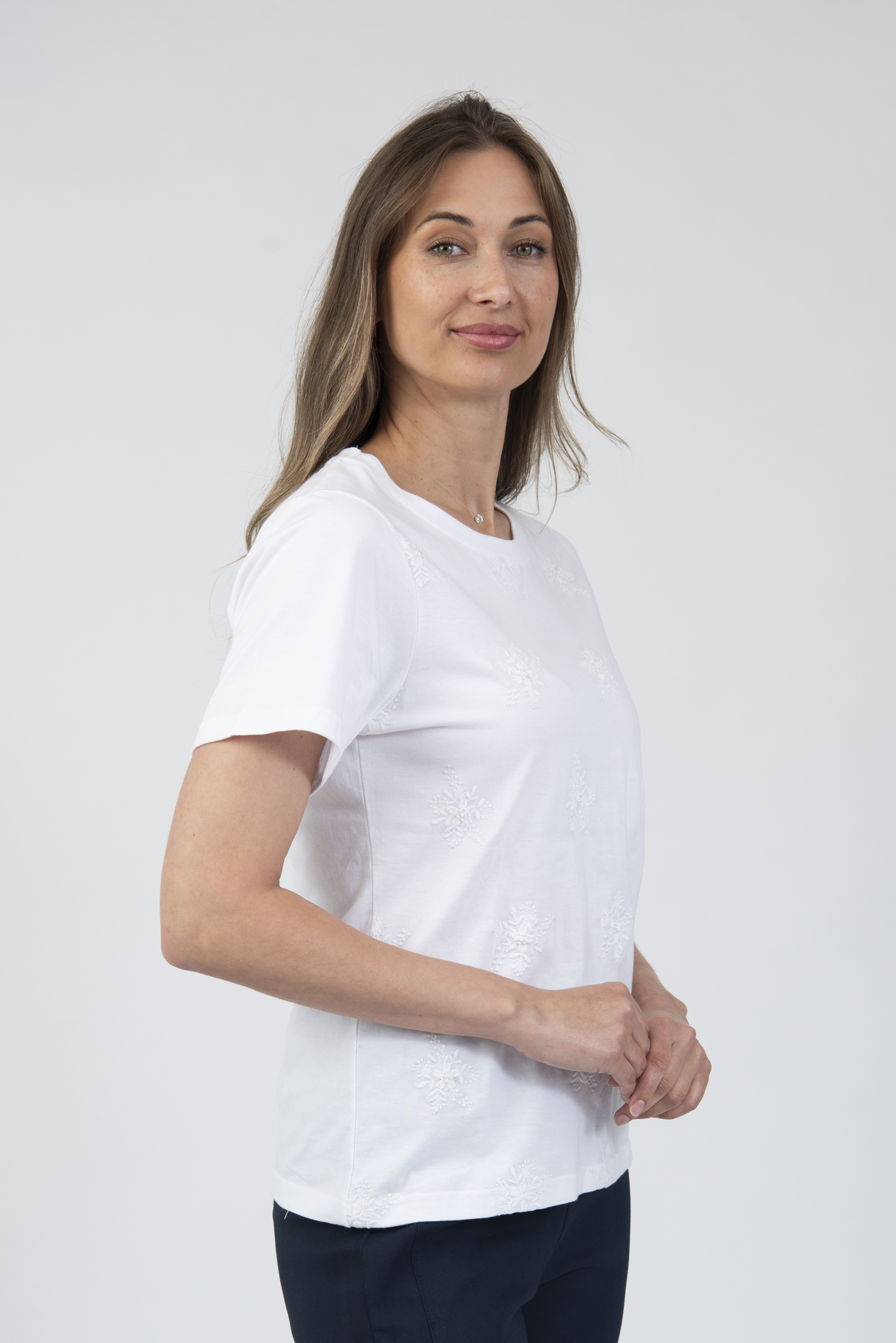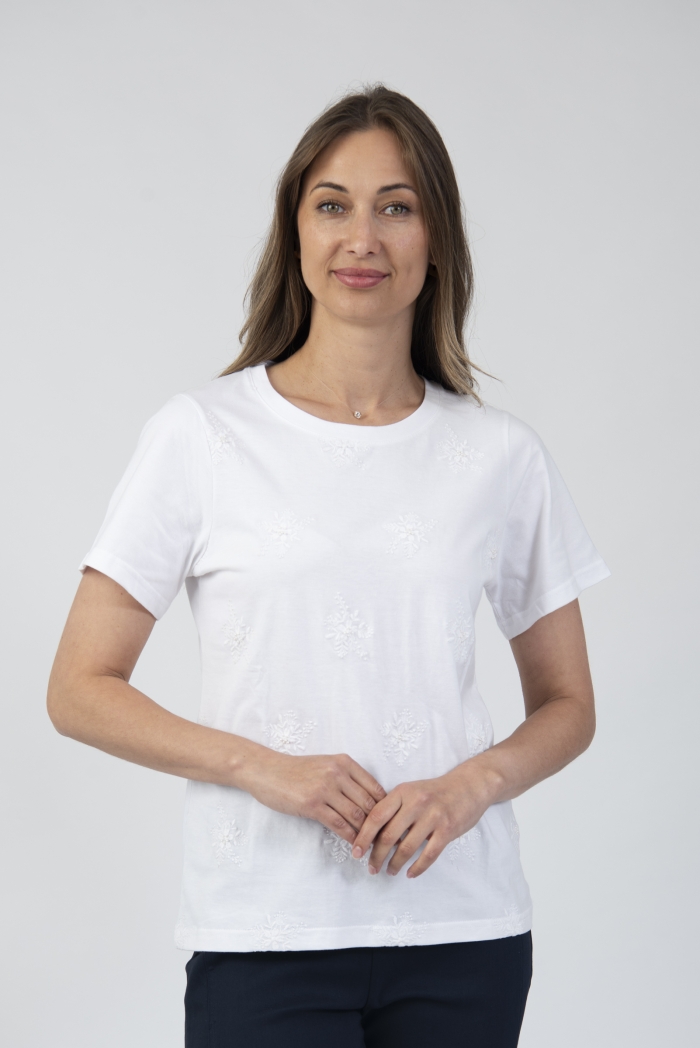 Round neck t-shirt with embroidery details