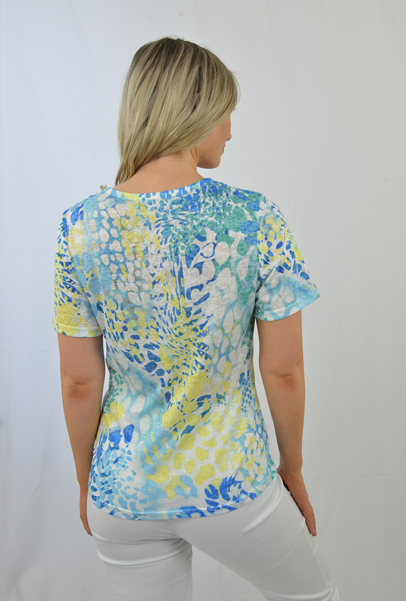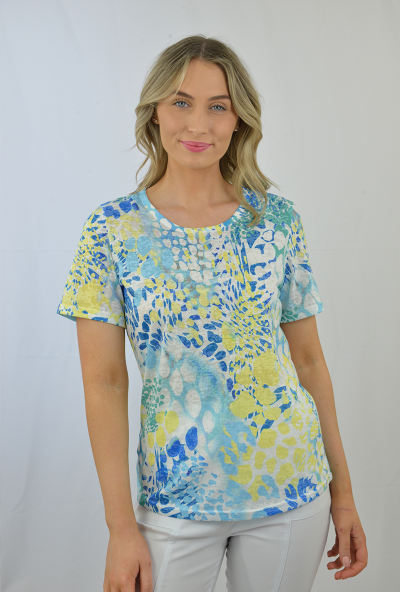 Printed short sleeve top with lace