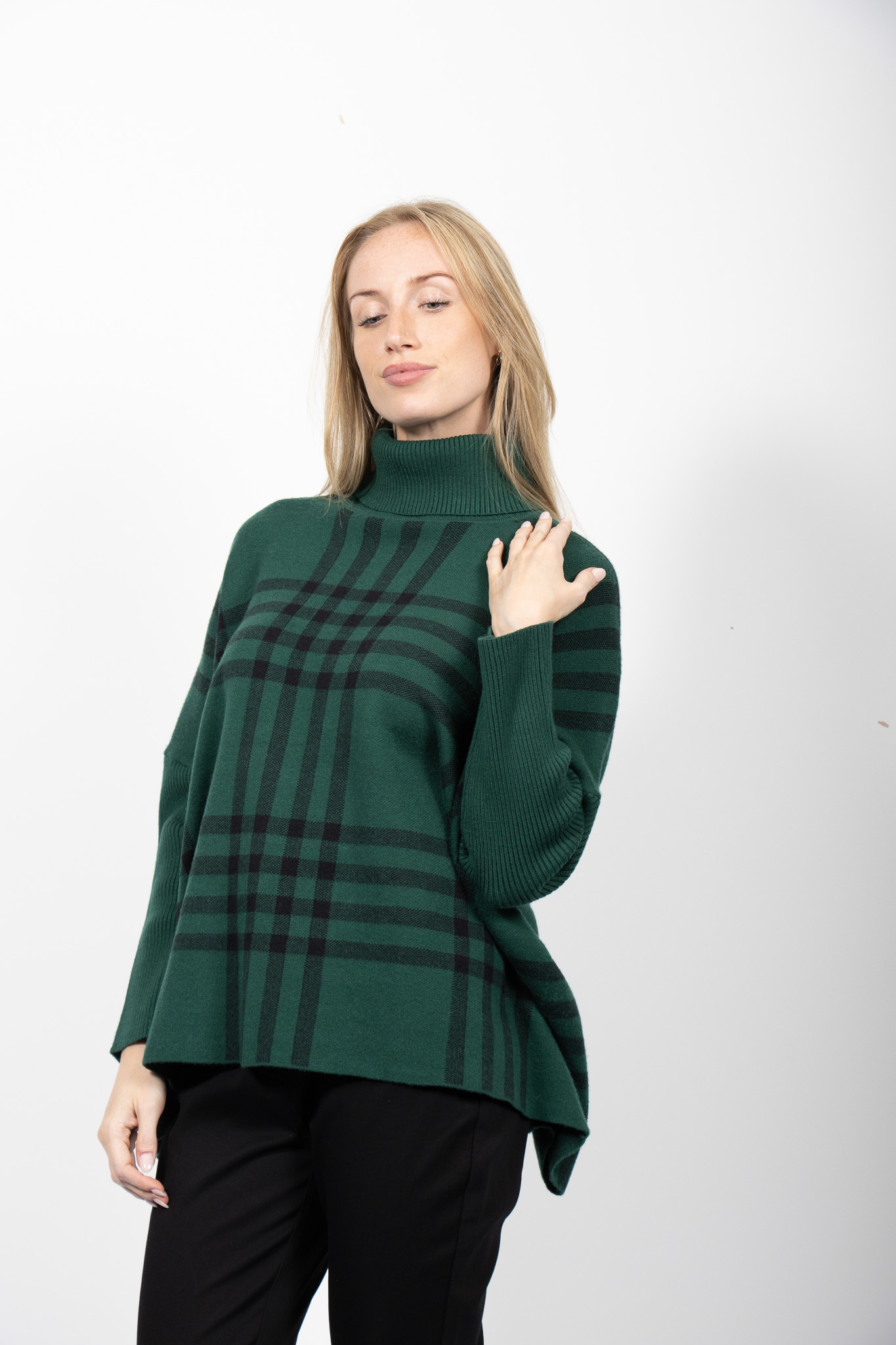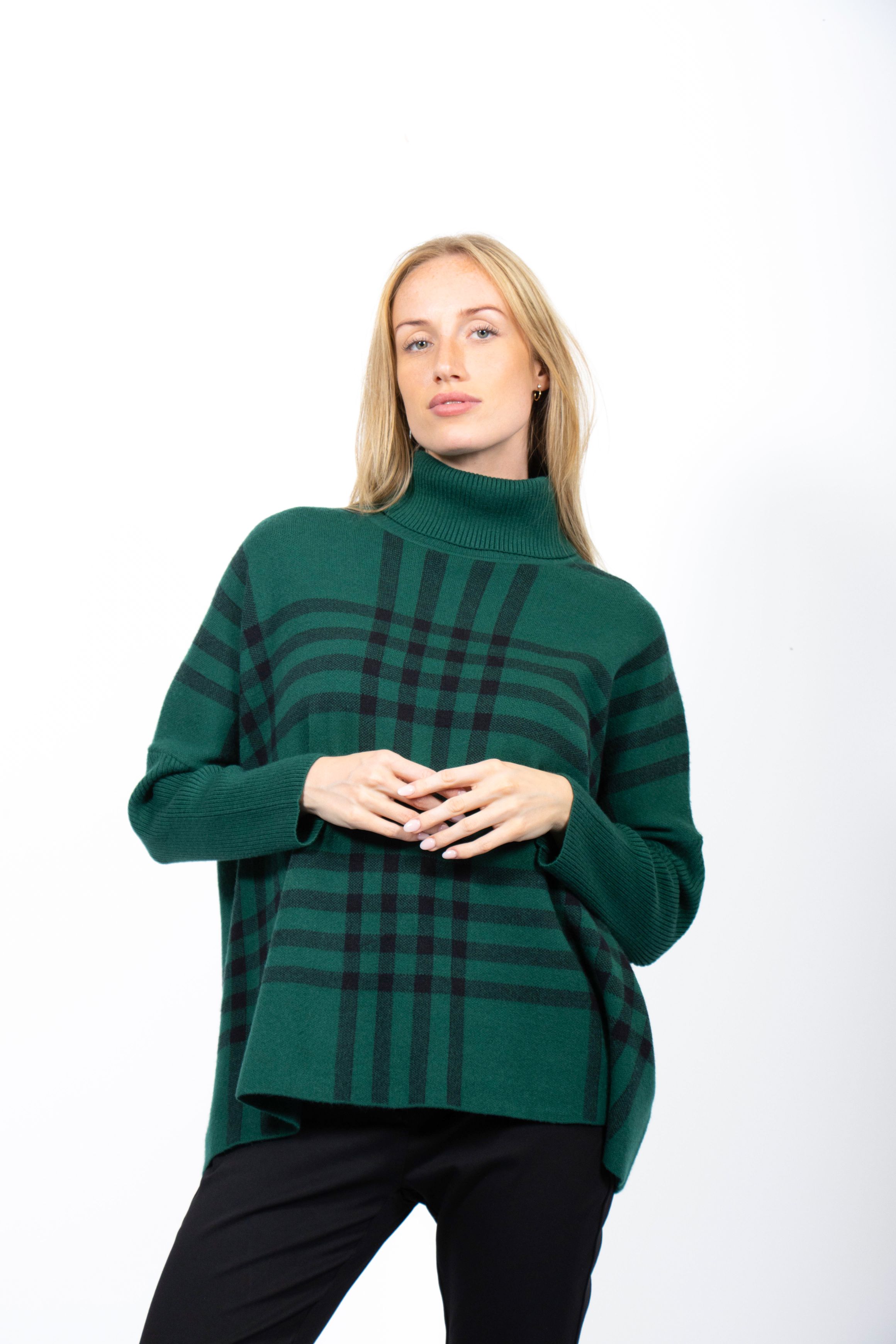 POLO NECK DROP SHOULDER CHECK SWEATER