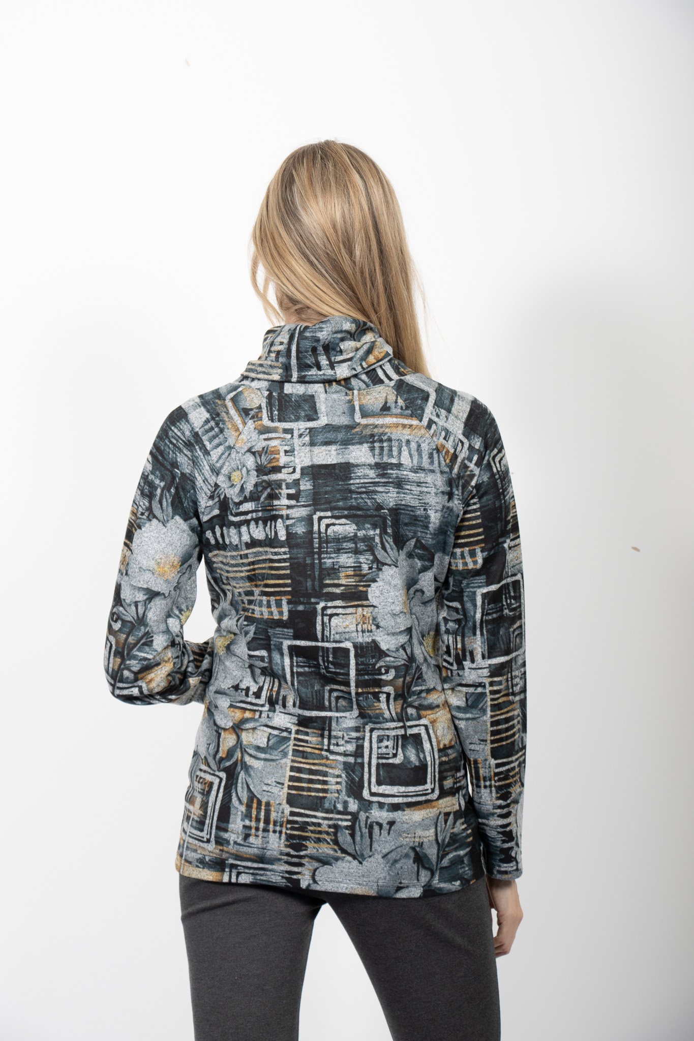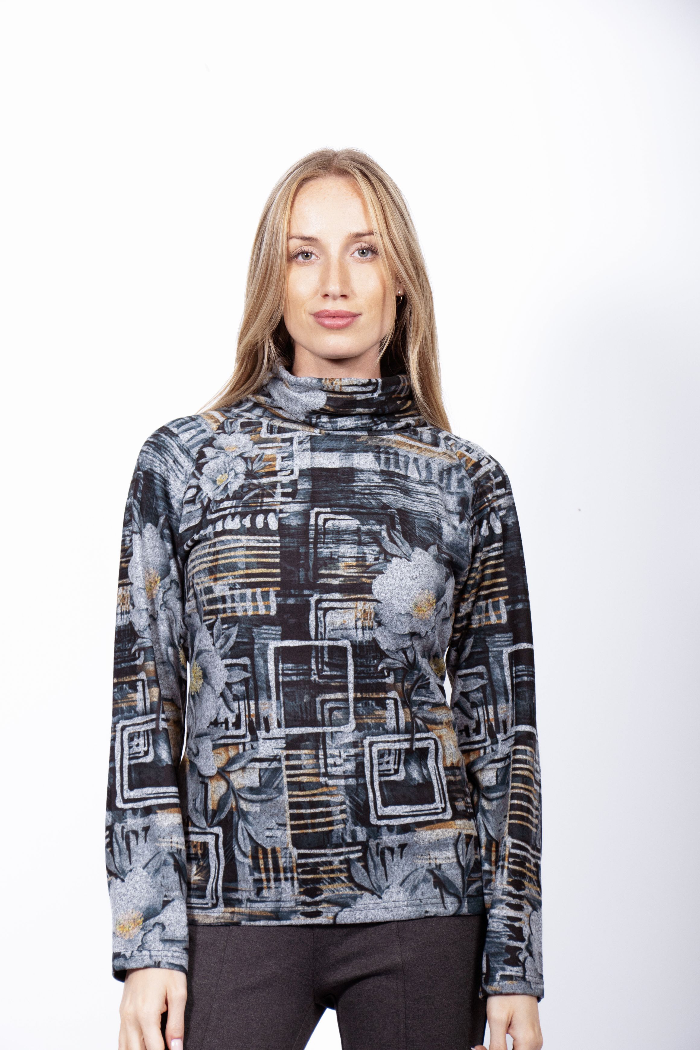 COWL NECK PRINTED LONG SLEEVES TOP