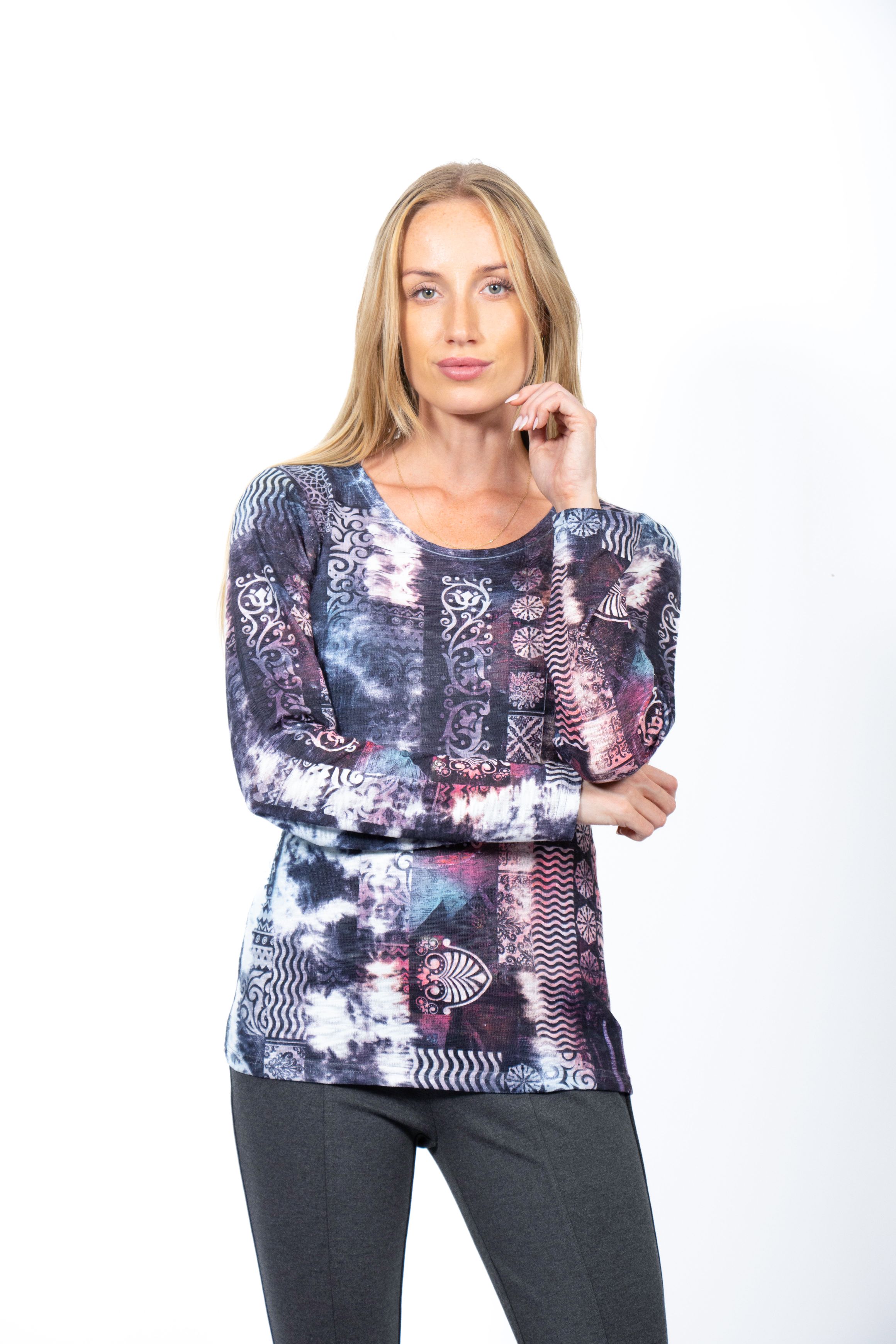 PRINTED ROUND NECK SLUB TOP