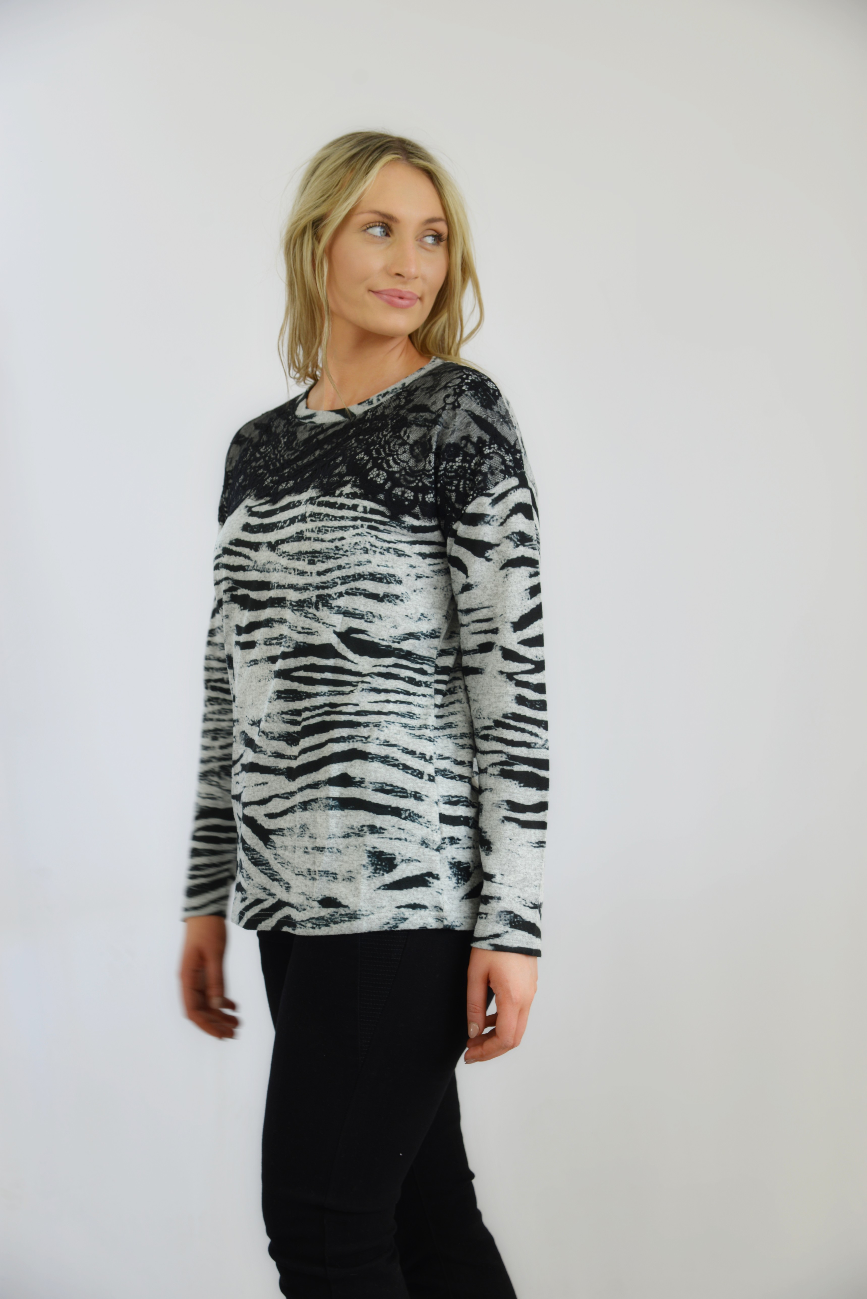 PRINTED TOP WITH LACE TRIM