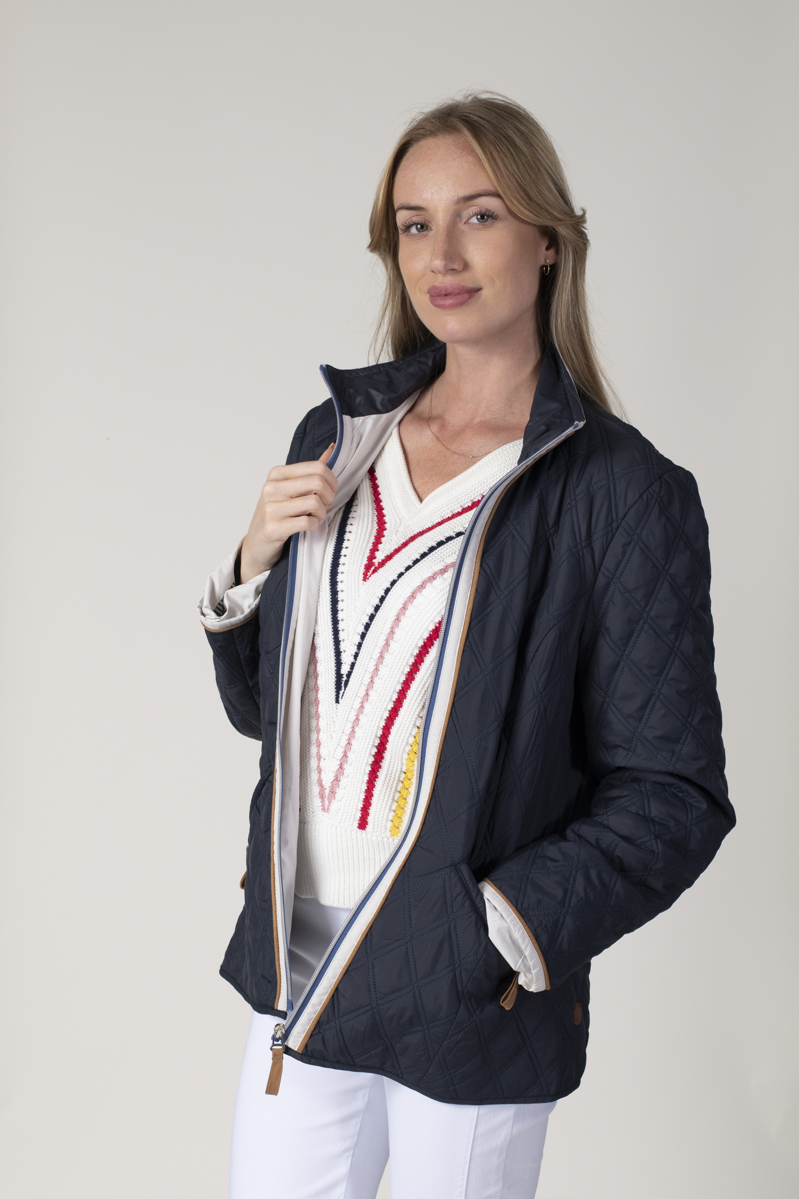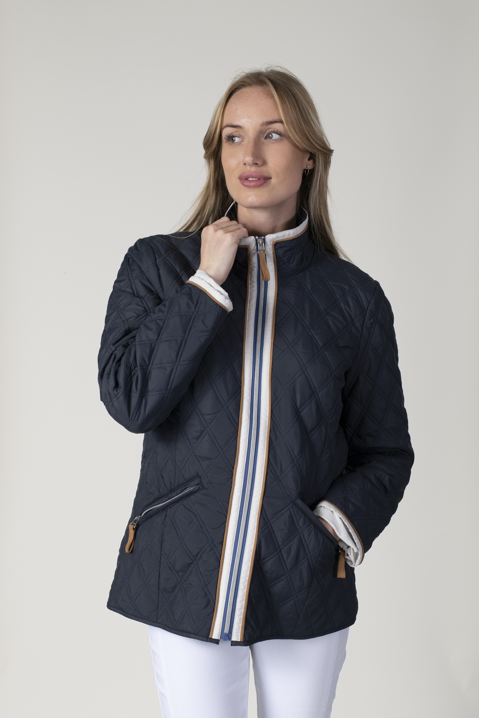 NAVY CONTRAST TRIM DIAMOND QUILTED JACKET