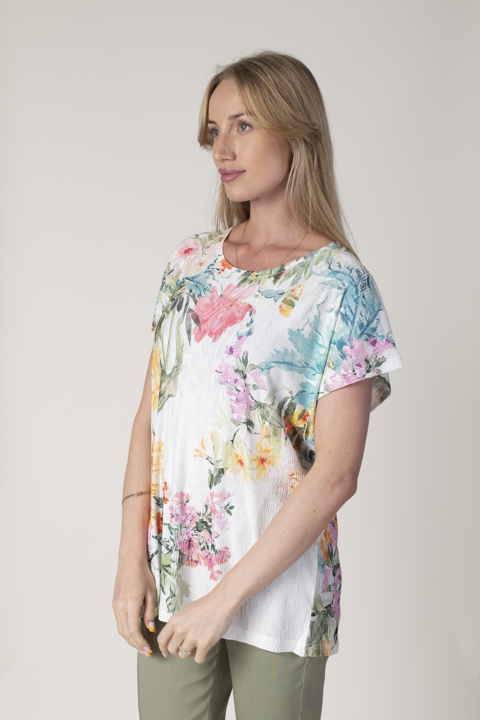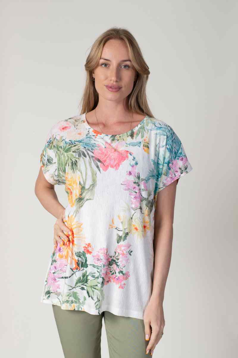 MULTI CRINKLE TROPICAL PRINT T-SHIRT