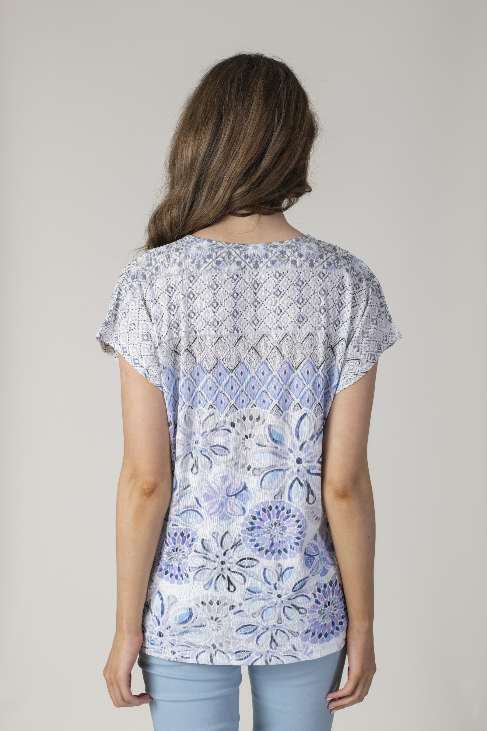 BLUE MOZAIC CRINKLE PRINT T-SHIRT
