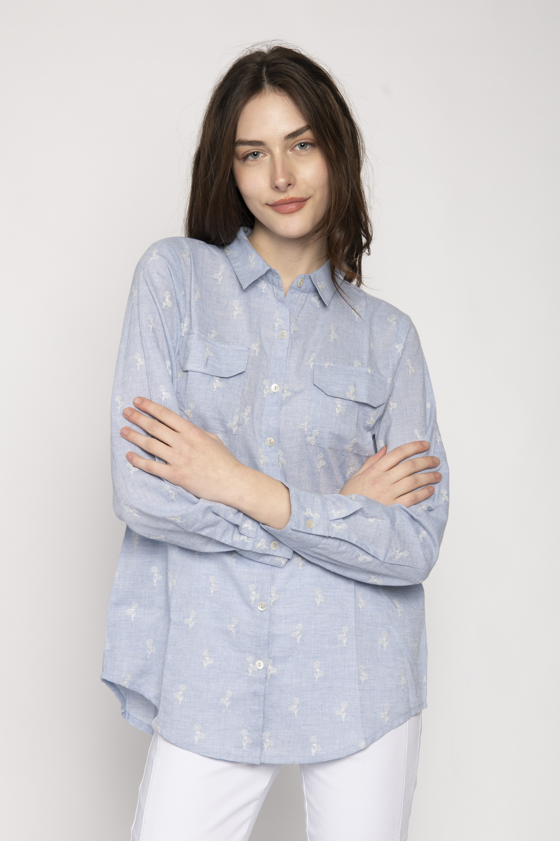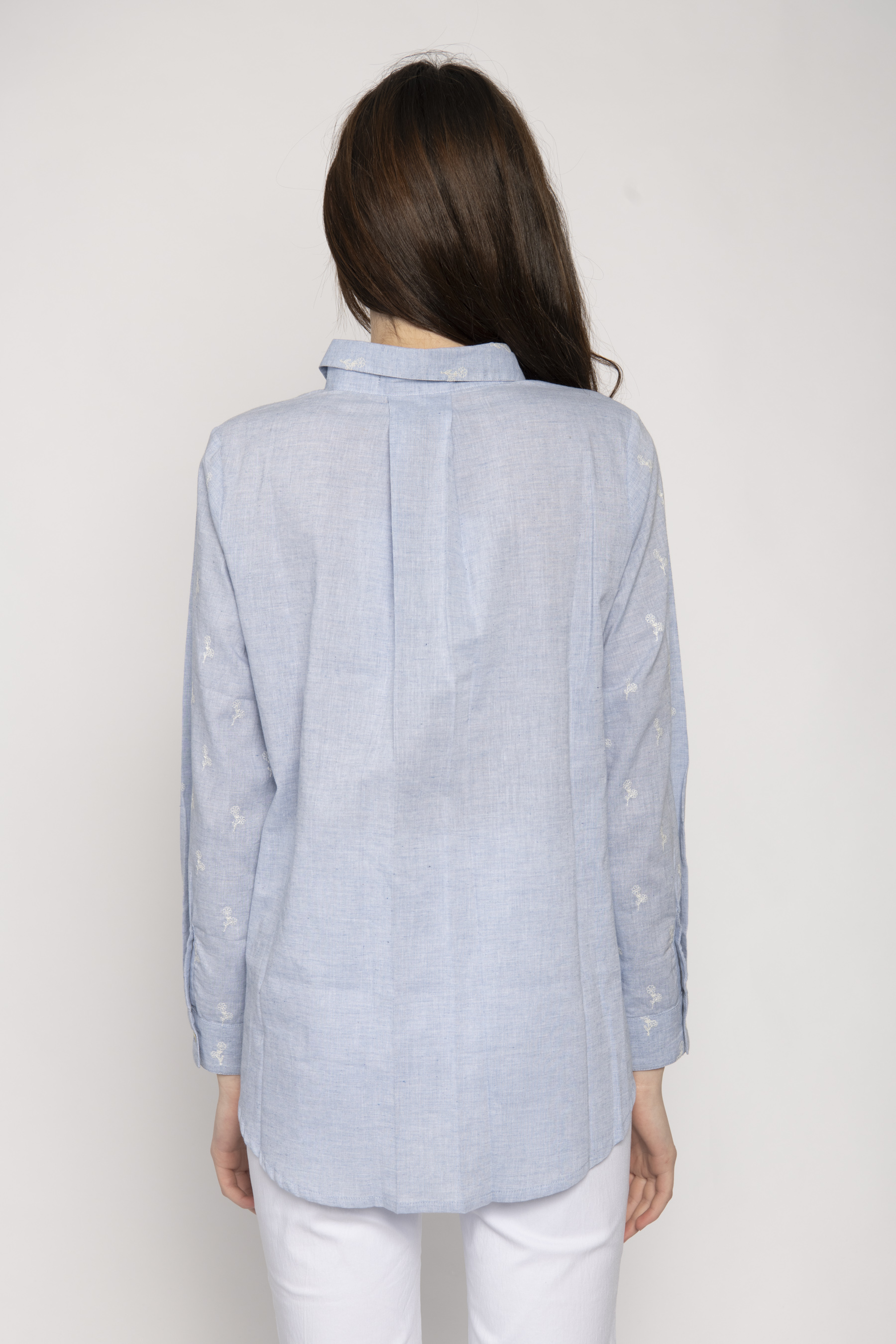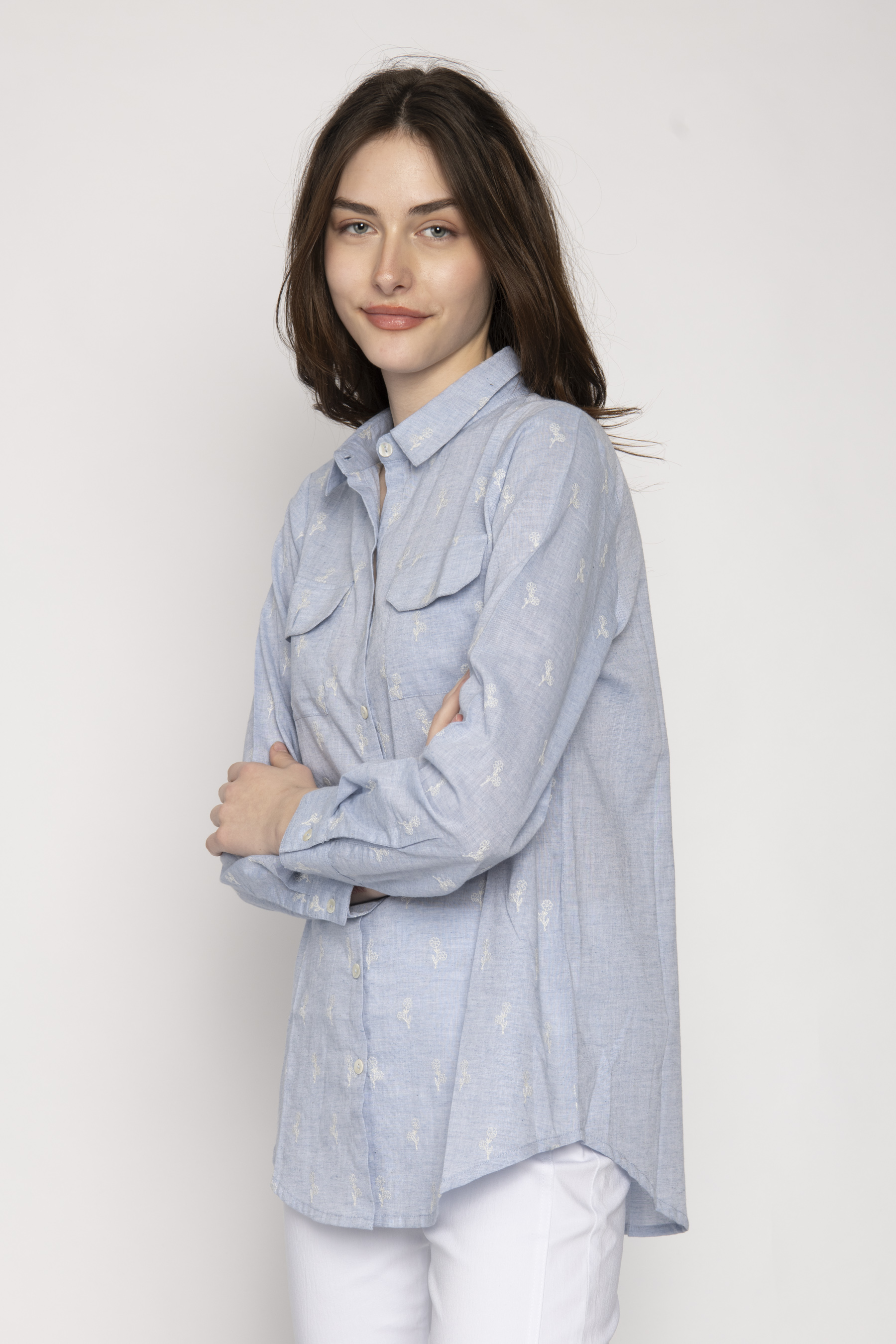 CHAMBRAY SHIRT WITH FLOWER EMBROIDERY