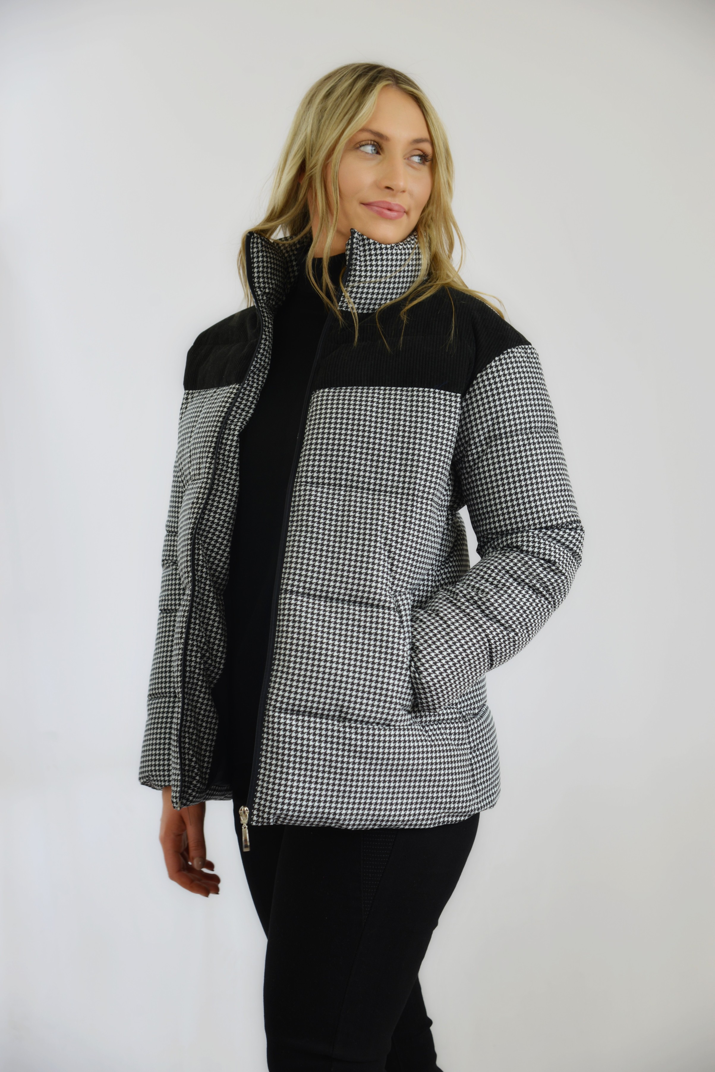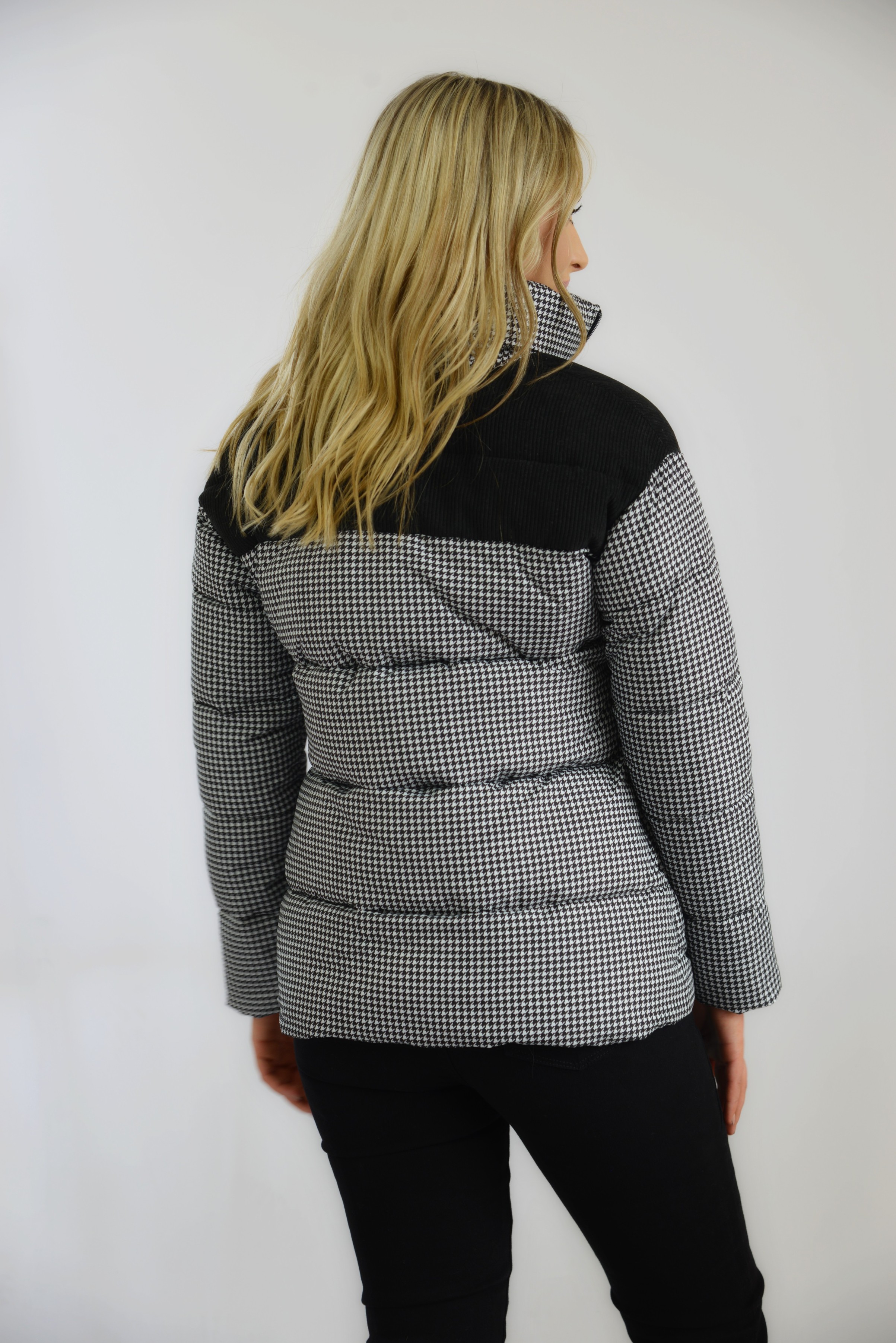 HOUNDSTOOTH CONTRAST FABRIC JACKET