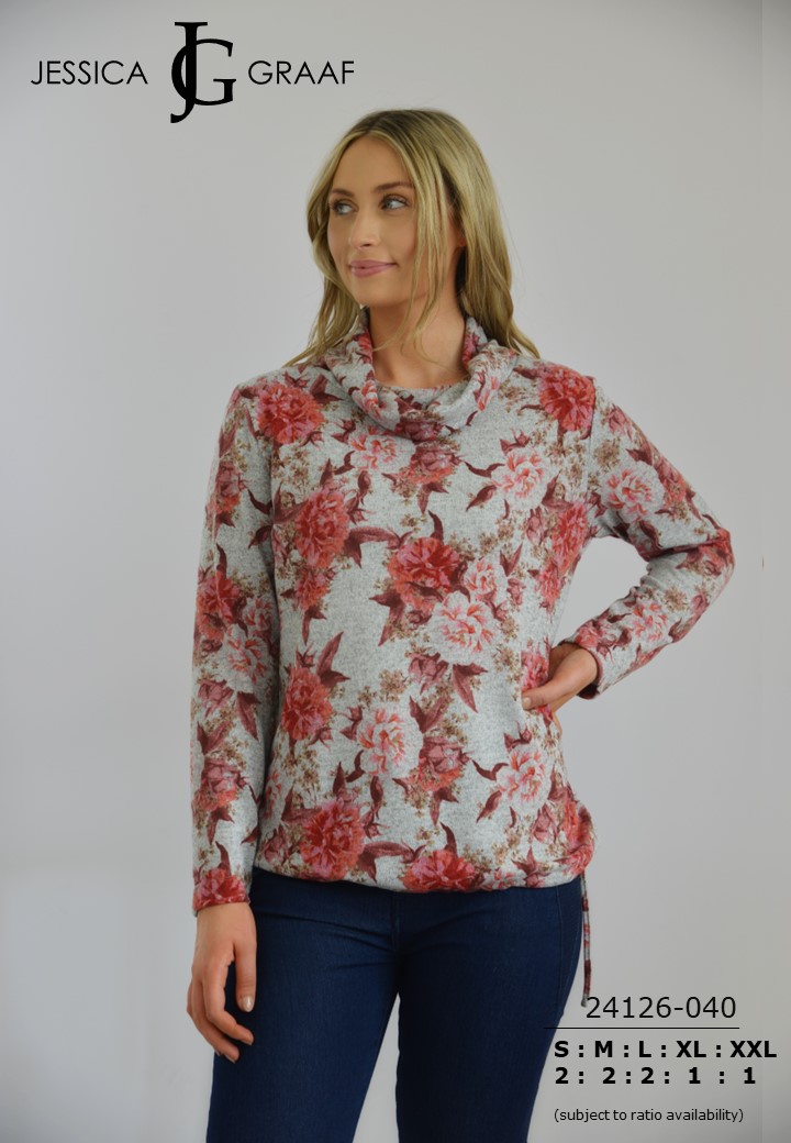 PRINTED COWL NECK TOP
