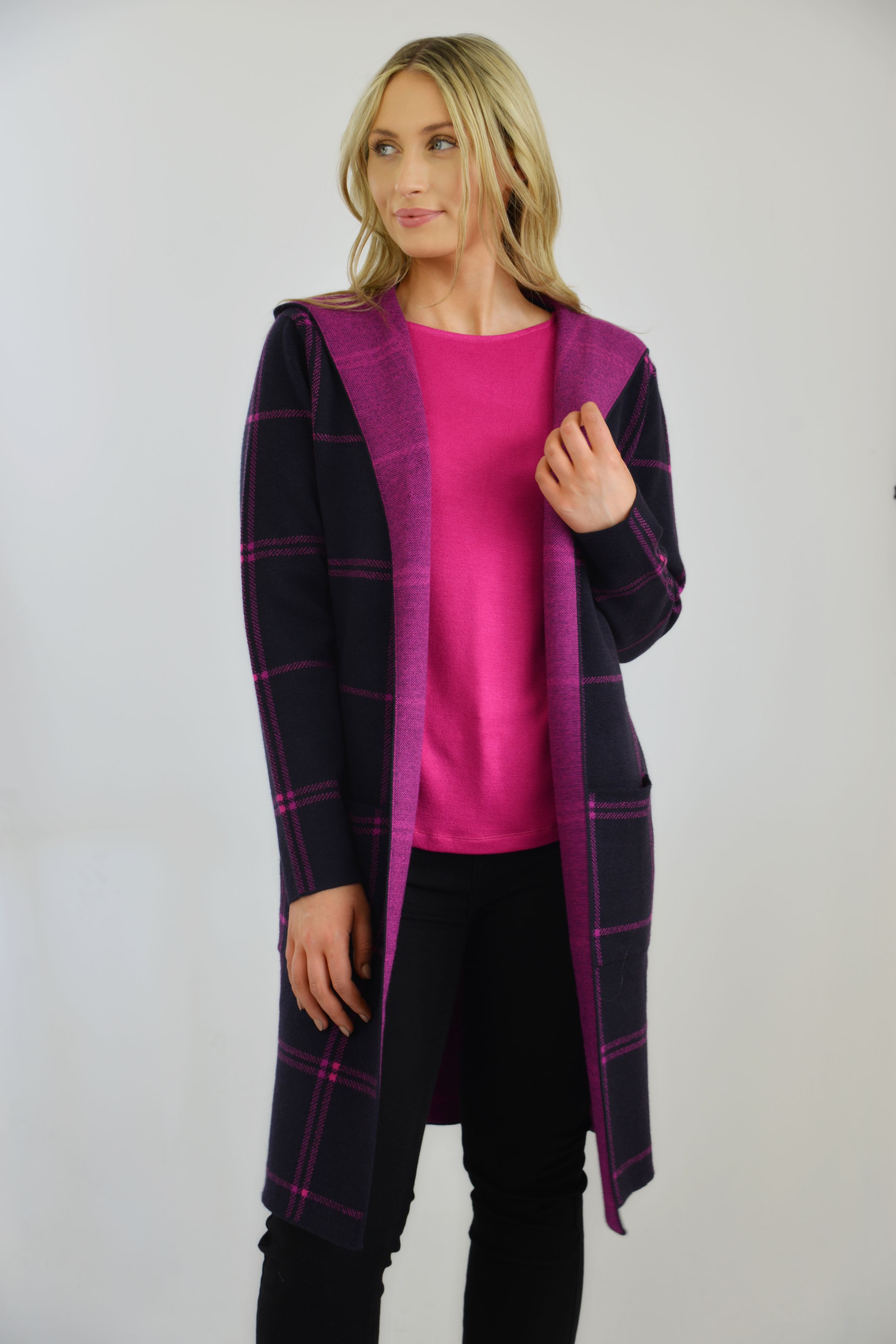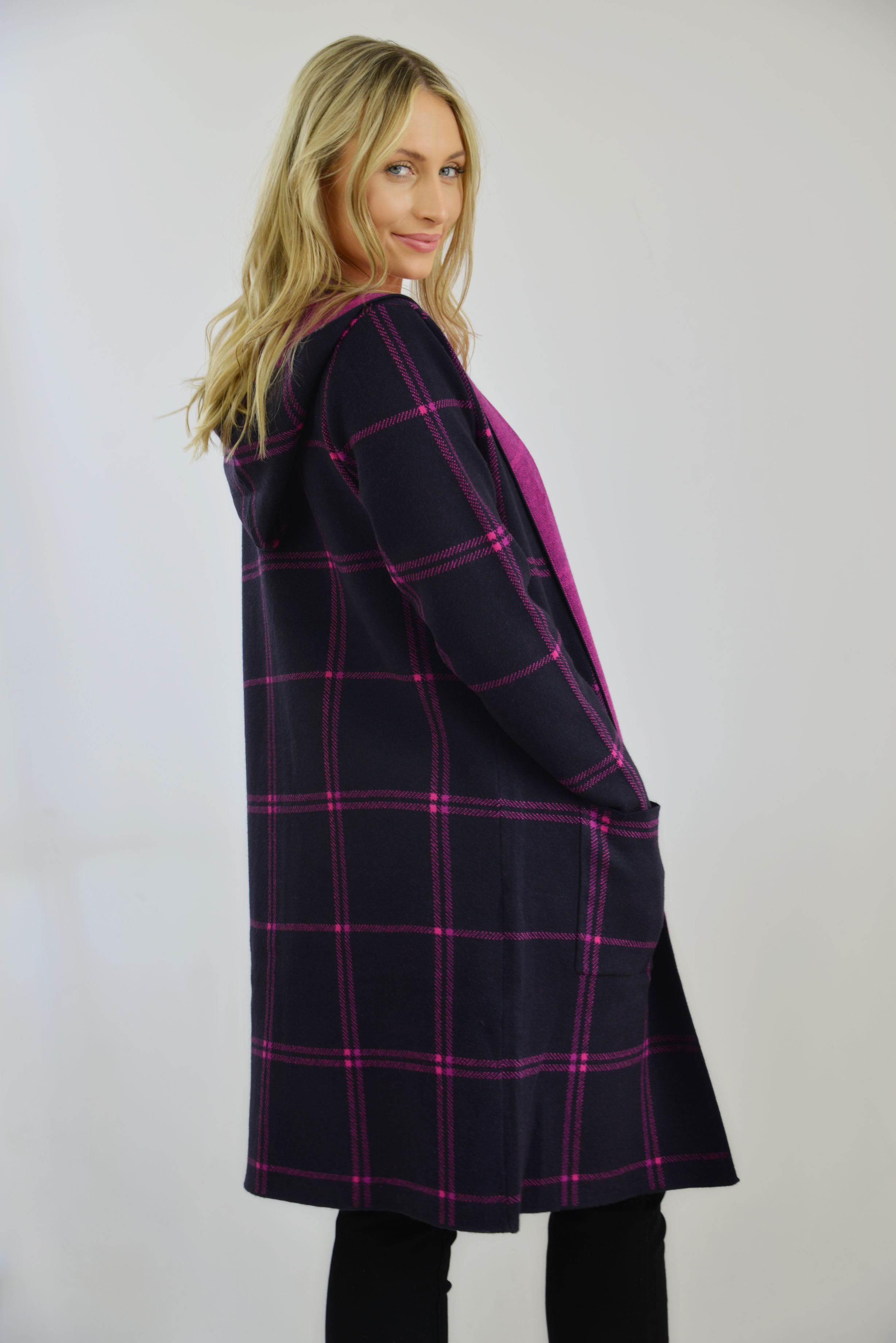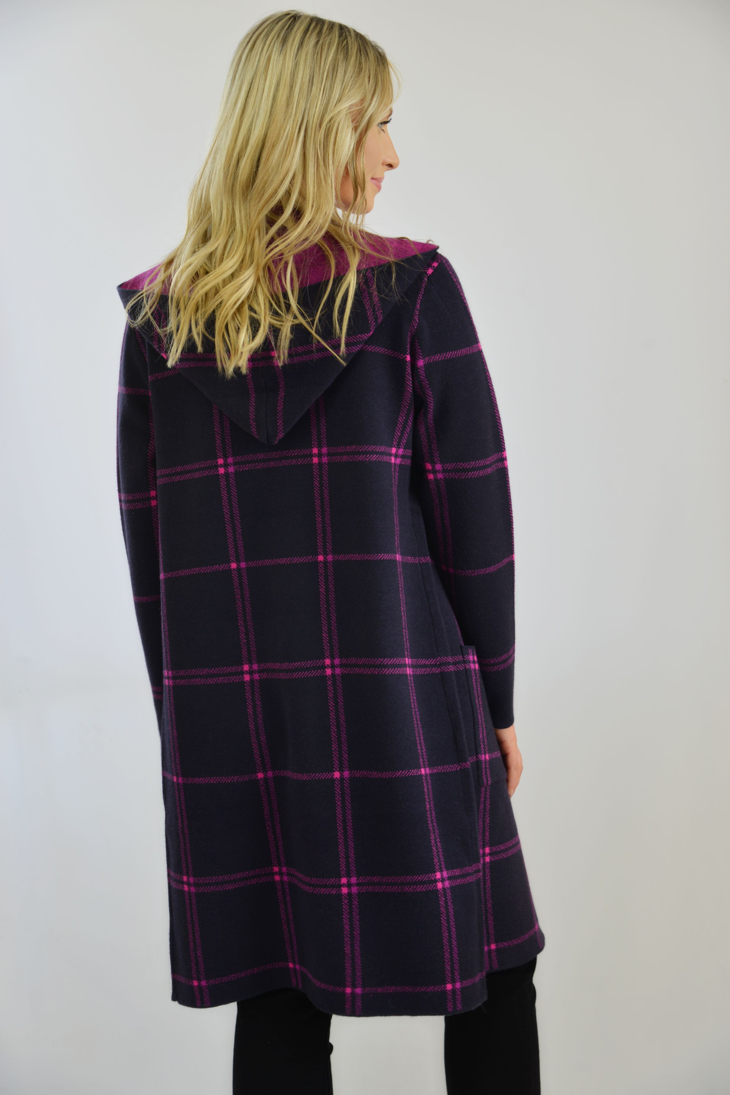 HOODED CHECK COATIGAN