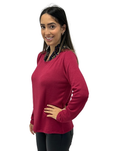 TOP WITH WOVEN SHIRT COLLAR