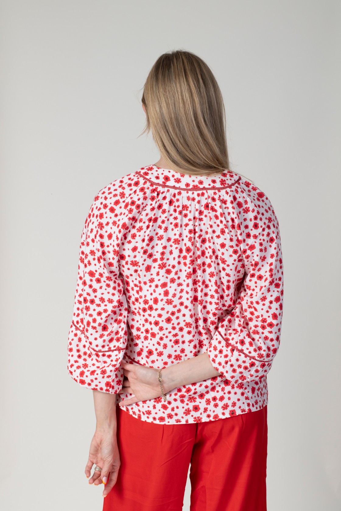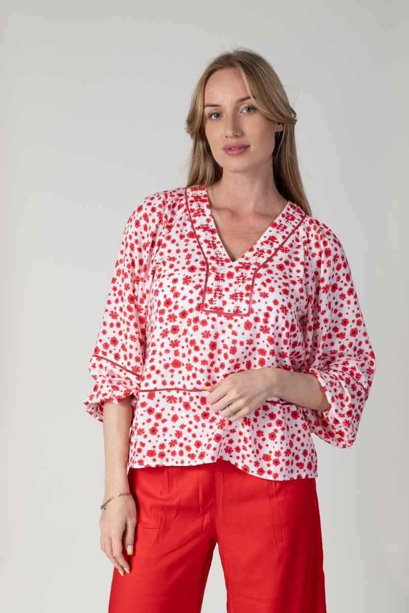WHITE & RED FLOWER BLOUSE WITY EMBROIDERRY