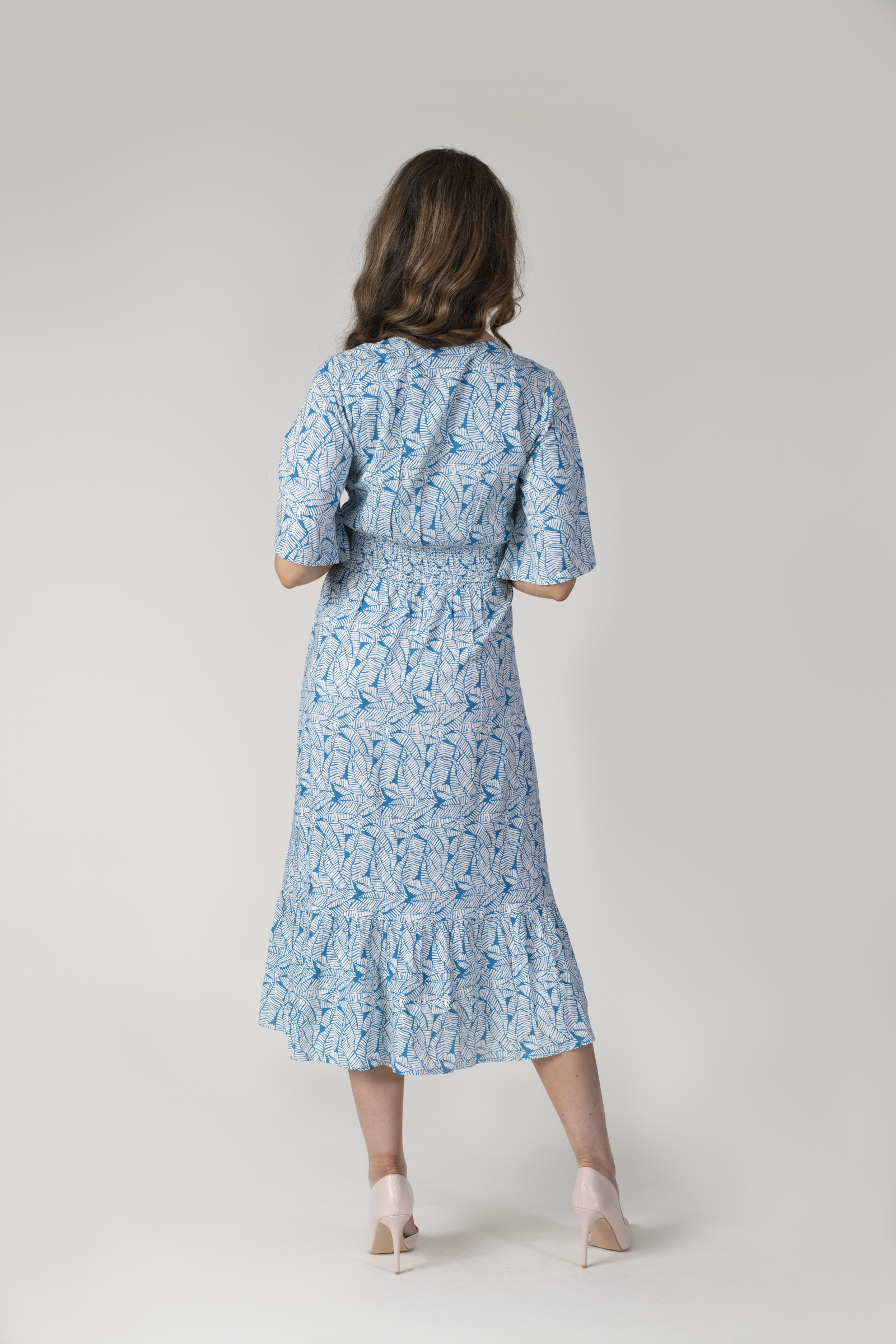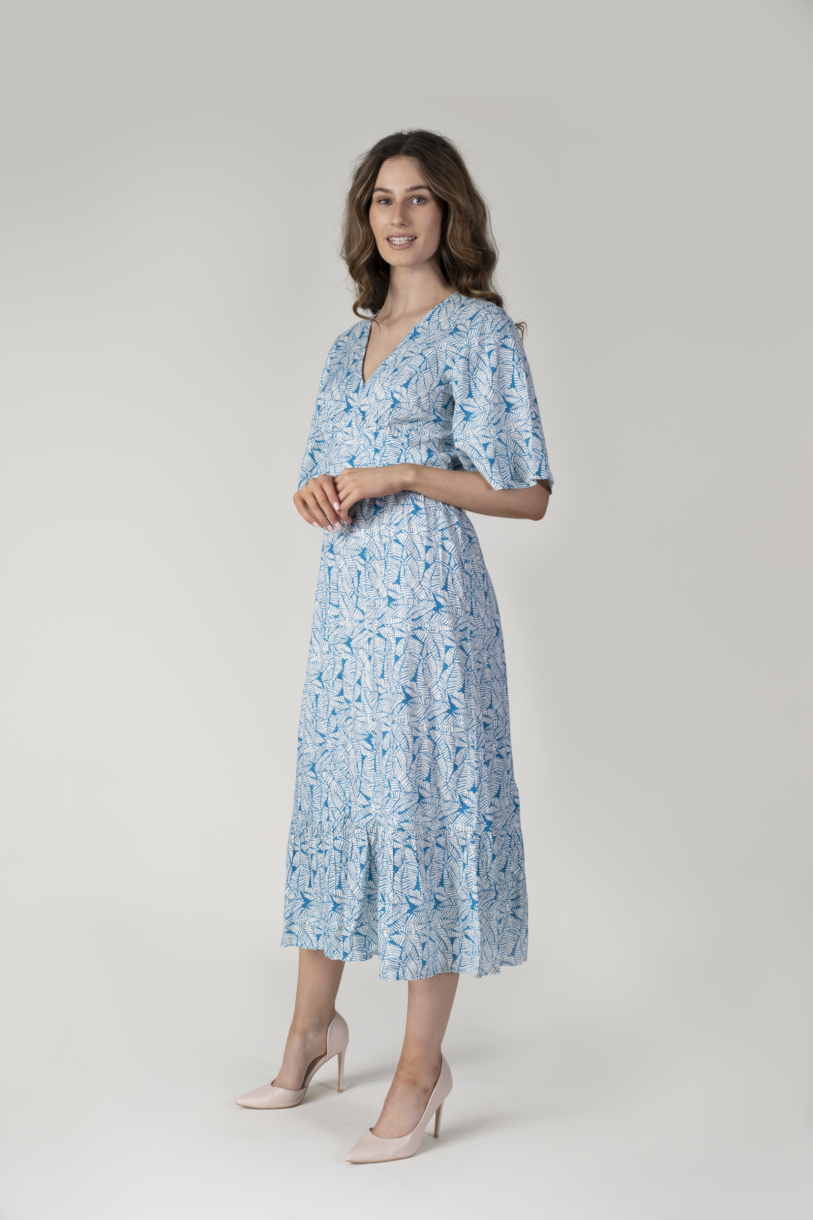 TEAL AND CREAM TROPICAL PRINTED MIDI DRESS HALF SLEEVES