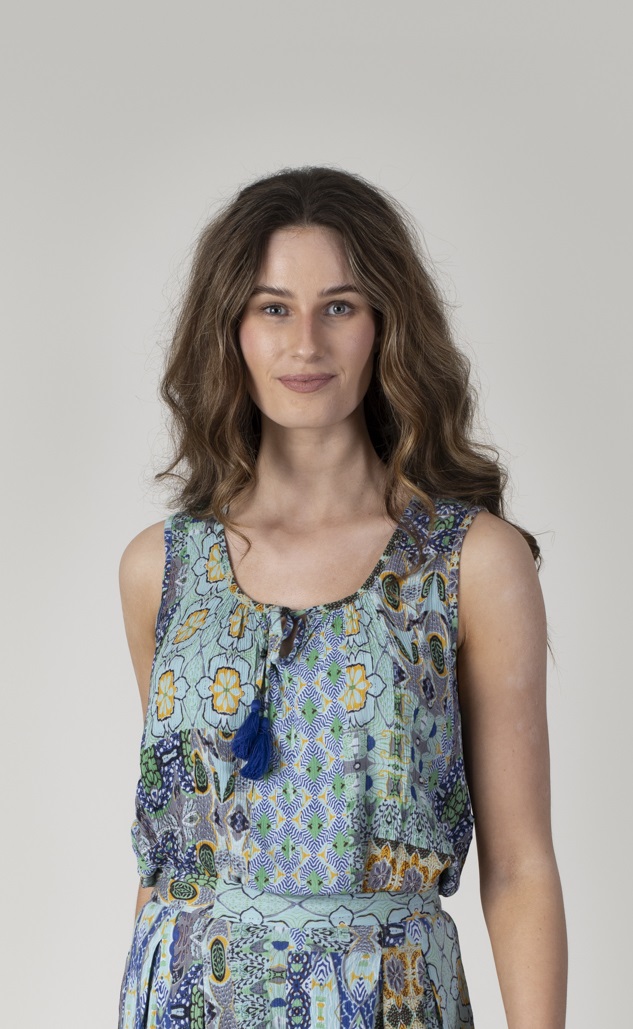 PRINTED CREPE BLOUSE WITH TIE FRONT